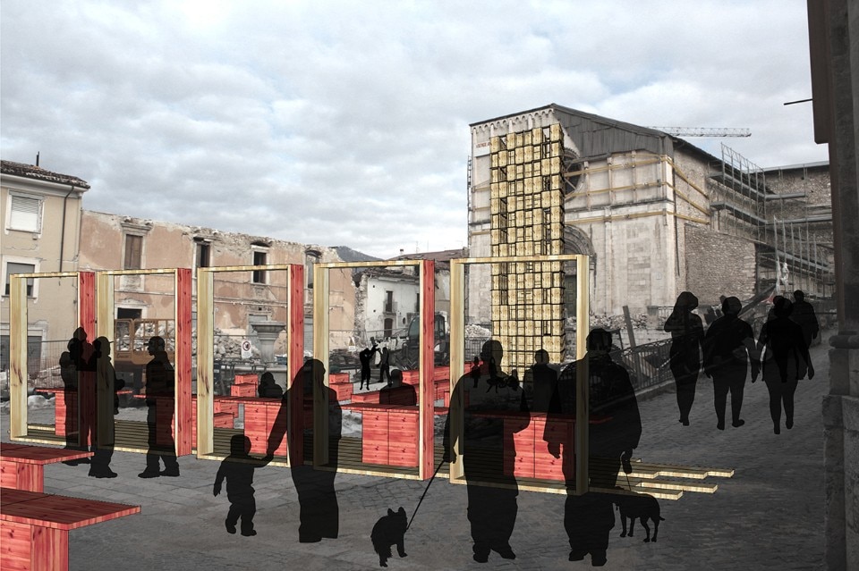 La struttura sociale, il contesto economico-produttivo, le tradizioni locali sono state studiate con l’aiuto dell’Università de L’Aquila, del Comune e delle associazioni cittadine, in un dialogo diretto che ha consentito al Laboratorio di accreditarsi come agenzia al servizio dei cittadini. In tal senso muovono tutte le sperimentazioni progettuali che, se in prima istanza si prefiggono di riportare nella città le pratiche, le attività e le ritualità precedenti al sisma, vorrebbero anche contribuire al rilancio dell’economia locale attirando la domanda turistica nei mesi primaverili-estivi. Conseguentemente molti progetti si calibrano per un utilizzo limitato nel tempo ed evitano i vincoli costruttivi e normativi di strutture permanenti.