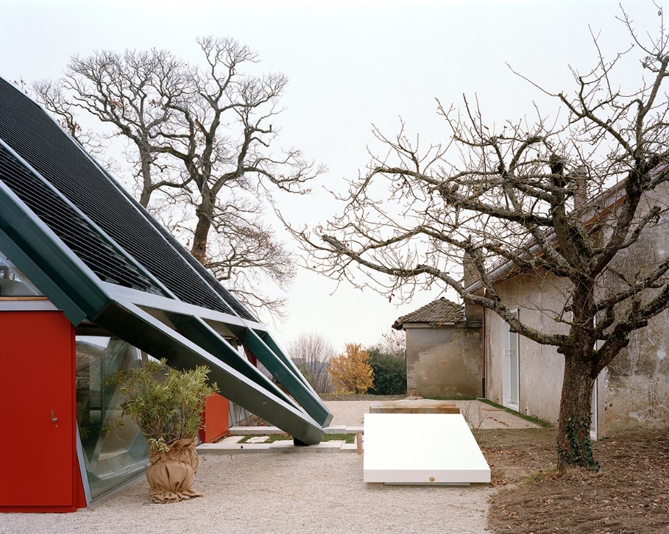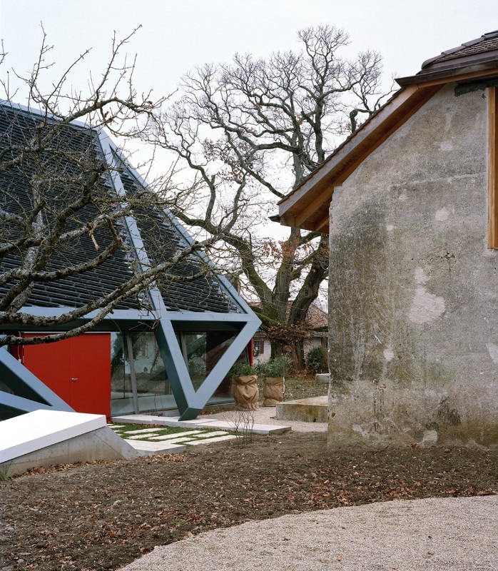 Il progetto di dieterdietz.org si adatta alle caratteristiche del sito rurale, dove edifici organizzati in piccoli cluster forniscono riparo e spazio alle attività quotidiane. La nuova abitazione aggiunta segue la tipologia del fienile. Questo ulteriore volume sposta il baricentro del conglomerato edilizio tra gli alberi. Il giardino è il luogo centrale del progetto ed è definito una vecchia struttura ristrutturata e dal nuovo granaio.