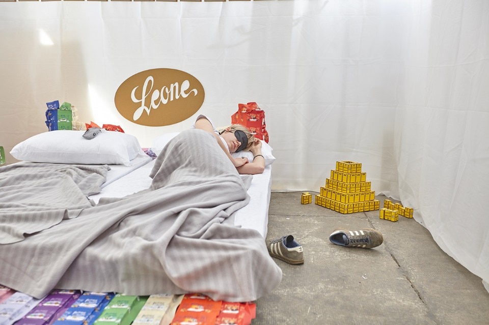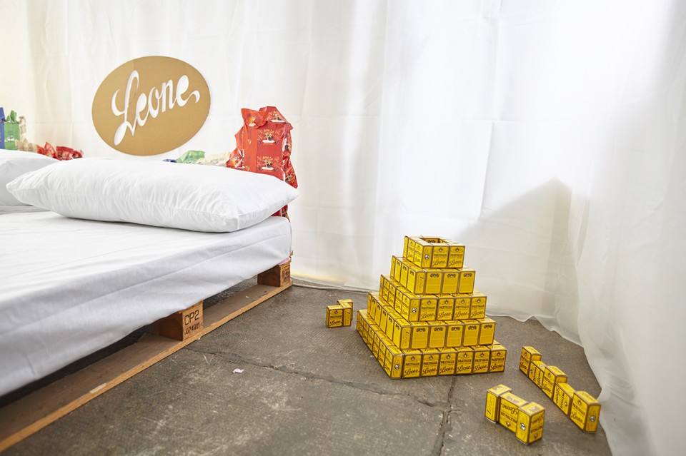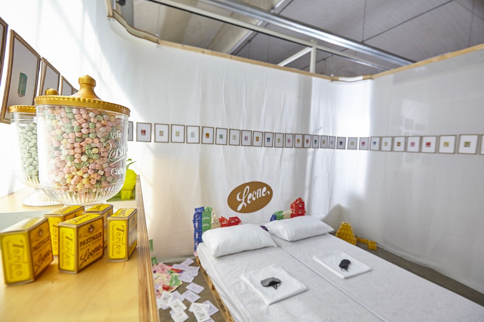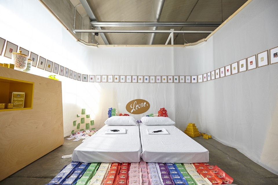 L’ispirazione parte dal libro Favole al telefono di Gianni Rodari, illustrato da Bruno Munari nell’edizione di Einaudi, da cui prende il nome. La fantasia dei Ghigos fa il resto e conduce al progetto: un racconto della storia Gastronomica d’Italia attraverso alcuni marchi celebri come le Pastiglie Leone, le caramelle Rossana o la Senape Orco, il riso Acquerello, giusto per fare qualche nome. In mostra, così come nel libro, tutto parte da una cornetta telefonica di un vecchio apparecchio Sip, sollevandola e componendo un numero, si può ascoltare la storia di uno dei marchi selezionati, guardando contestualmente un video inerente. Il passo successivo è scoprire, aggirandosi tra le stanze del Design Hostel, quali sono le “suite”, dedicate a questi prodotti, allestite con foto e oggetti che descrivono la storia di ogni azienda. Il visitatore si troverà così a curiosare nella stanza di uno dei residenti temporanei e quest’ultimo si troverà ad alloggiare in un allestimento. Per chi poi volesse anche assaggiare i prodotti in mostra non rimane che andare alla scoperta dei locali in città quali il Wooding Bar, Lo Spirit de Milan, Mare Culturale Urbano, Raw Milano e l’Ov Milano.
