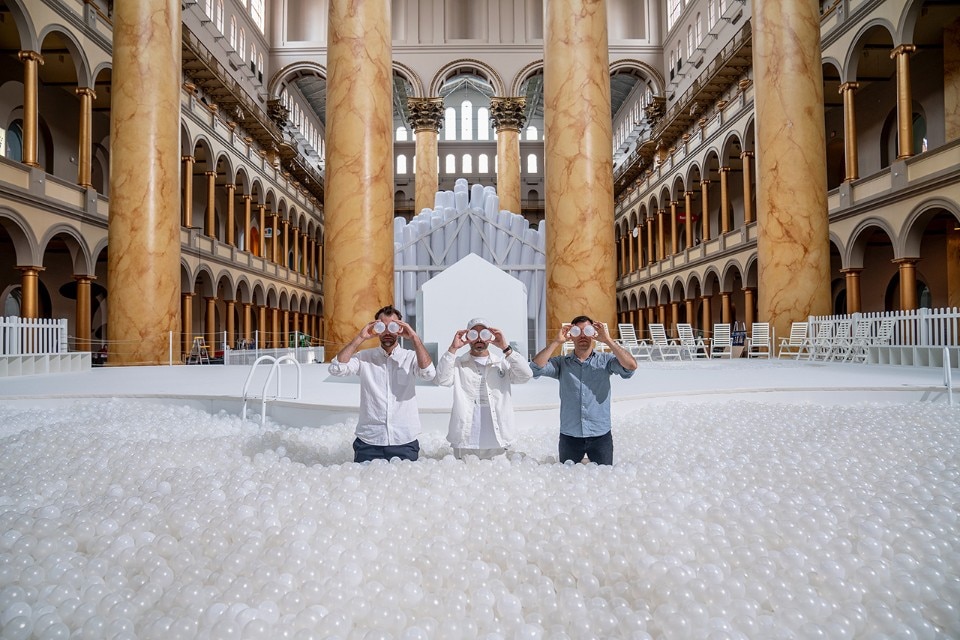 Sì, dovevamo trovare un’istituzione che credesse nell’idea di costruire la tipica casa americana ma bianca, e che avesse ovviamente anche lo spazio per realizzarla. Il National Building Museum, dove Snarkitecture aveva già presentato nel 2015 una delle sue installazioni più note, The Beach, ha avuto il coraggio di imbarcarsi in questa avventura. Quindi ora qui abbiamo una Casa Bianca, una casa che non è una casa ed è altro, nel cuore degli Stati Uniti perché siamo a Washington e che inaugura il 4 Luglio, giorno dell’indipendenza del paese…