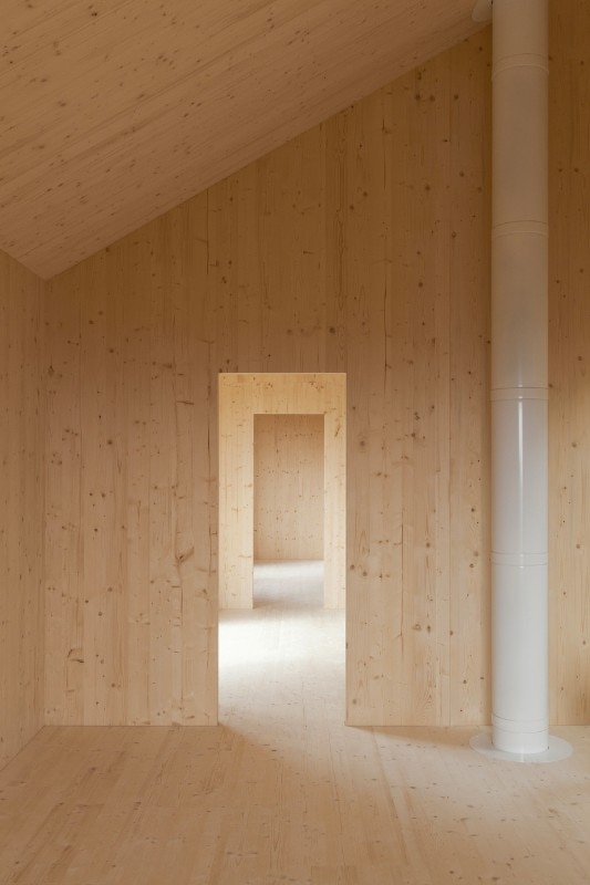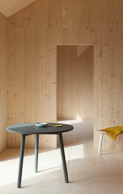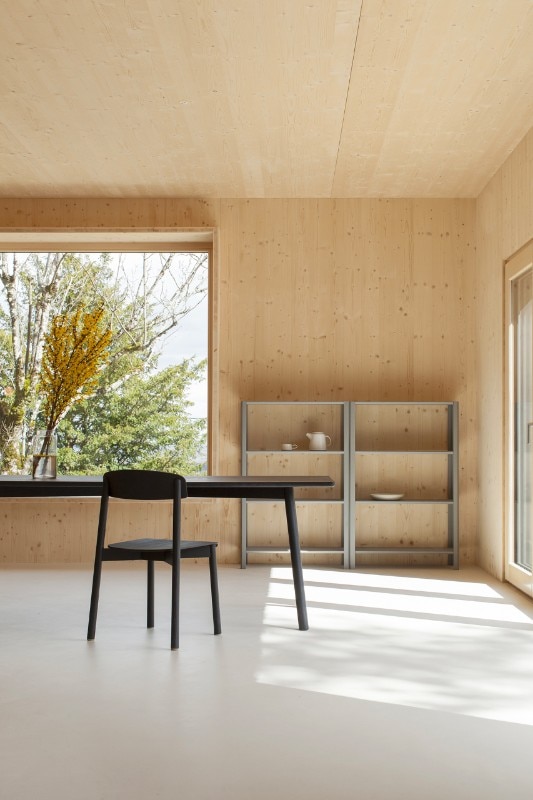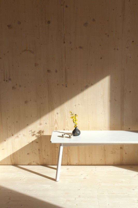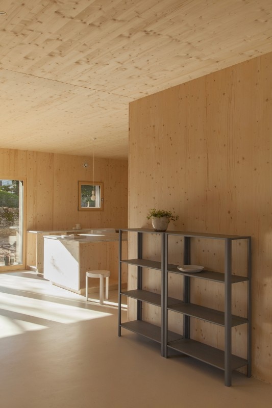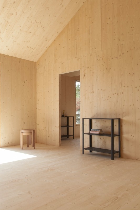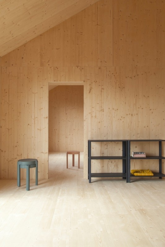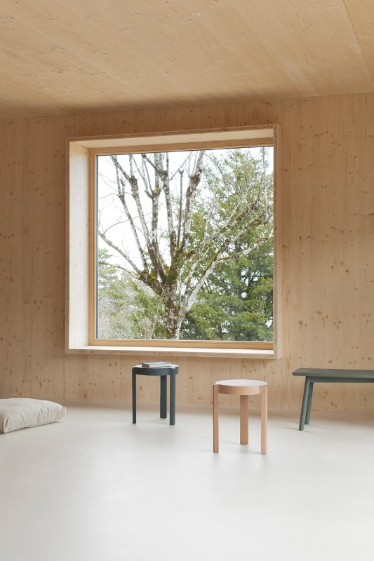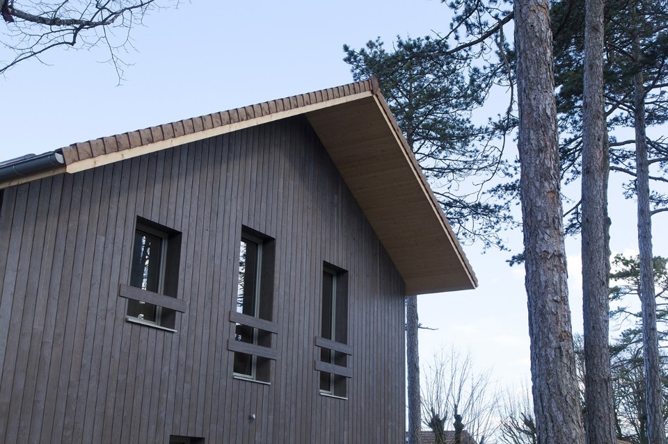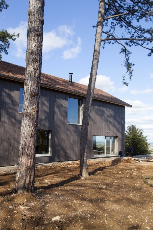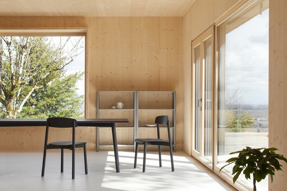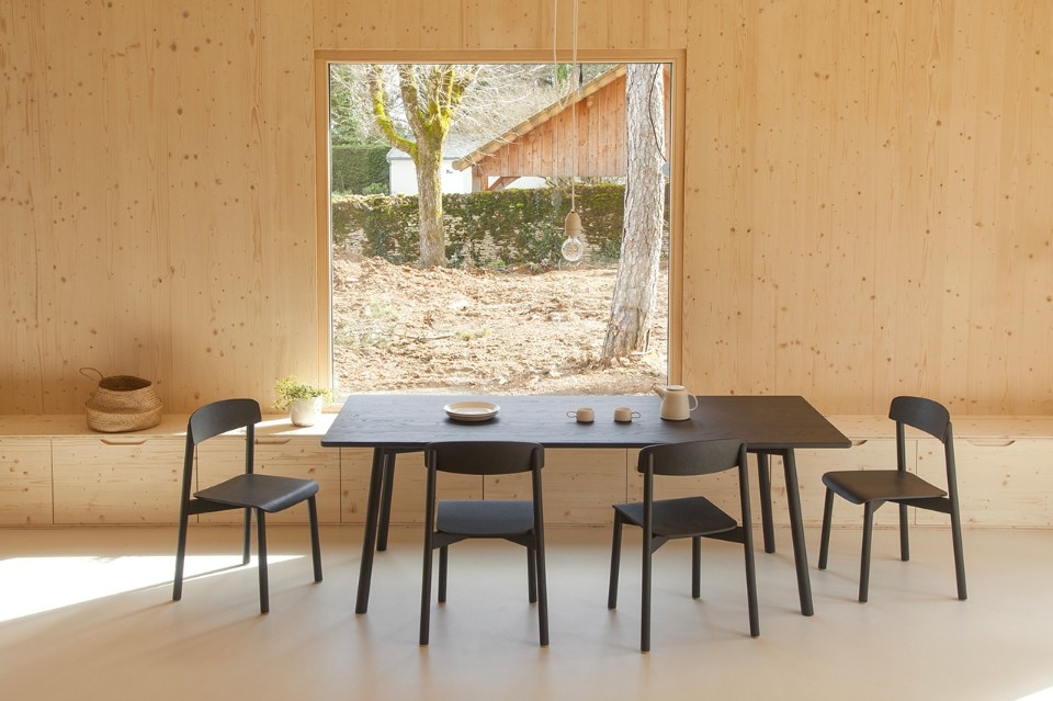 Atelier Ordinaire progetta una casa (la seconda) prefabbricata e “passiva” in Borgogna, interamente di legno ed ecosostenibile. L’interno è caldo, e la casa è in simbiosi con gli ambienti che la circondano. Solo il pavimento è di cemento. Il sistema di riscaldamento non è complesso perché la struttura è ben isolata, grazie anche al preciso posizionamento delle finestre, che è stato calcolato per fare in modo che basti il calore offerto dalla luce del sole. Nei mesi invernali l’intera casa è riscaldata dal caminetto nel salotto, e la canna fumaria riesce a diffondere calore al piano superiore, in modo che non venga sprecata energia. Per gli esterni è stato usato una vernice speciale resistente all’acqua e dal colore cangiante che è grigio o marrone e non disturba la natura dei dintorni. I mobili di legno che arredano gli spazi sono Stattmann Neue Moebel, un marchio tedesco che condivide con Atelier Ordinaire la stessa attenzione per la sostenibilità.