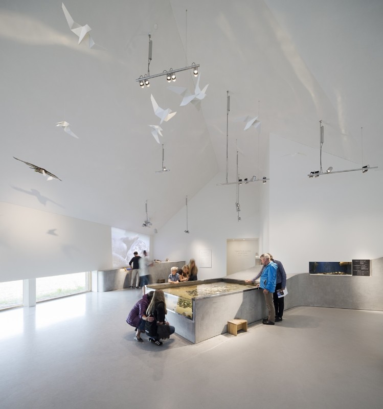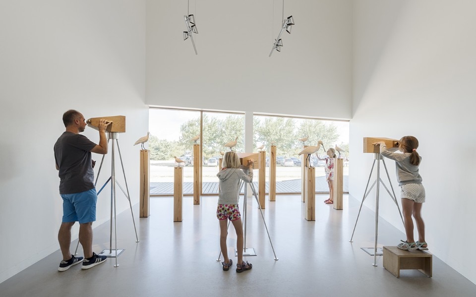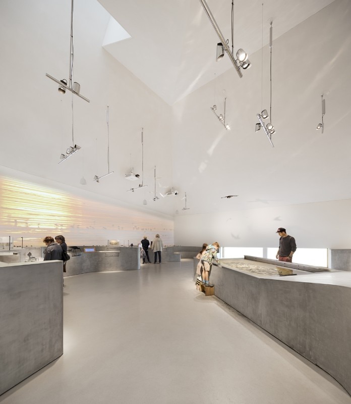 L’edificio principale del Wadden Sea Center presenta l’estensione spazio espositivo, una zona d’ingresso con caffetteria, una terrazza coperta e una zona ufficio, mentre l’edificio annesso – posizionato dal lato opposto dell’accesso – ospita sale per attività didattiche, una seconda terrazza coperta e un magazzino. Il progetto architettonico è stato concepito in collaborazione con l’architetto che si è occupato dell’allestimento, garantendo così una coerenza fra esterno ed interno.