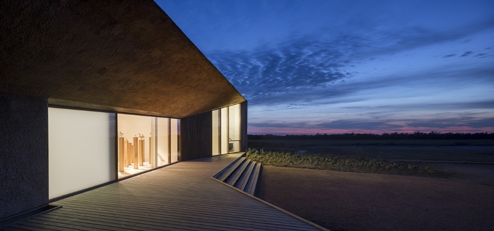 Nelle paludi del mare di Wadden, il più grande parco nazionale in Danimarca e patrimonio mondiale dell'UNESCO, Dorte Mandrup ha ampliato e ricostruito una grande fattoria con tetto di paglia. Scoprire che il fondatore dello studio ha un background in scultura e ceramica giustifica solo in parte i risultati raggiunti da questo intervento su un edificio preesistente, accuratamente realizzato e altamente espressivo.