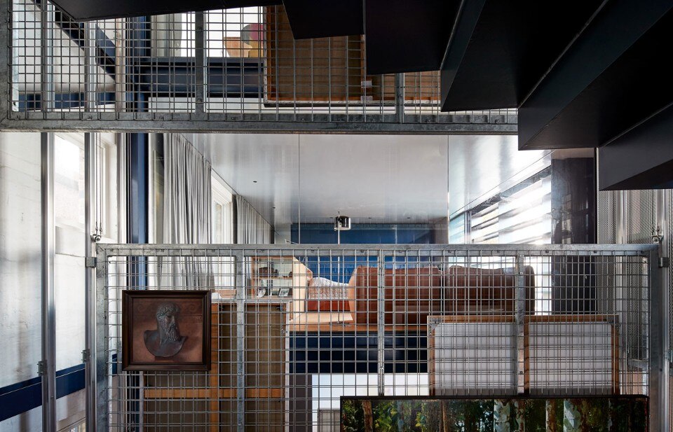 Alle sobrie pareti in mattoni dell’edificio esistente si sovrappone un volume altrettanto discreto in lamiera metallica nera. Da William Lane, la strada su cui affaccia, è pressoché impossibile immaginare l’esuberante articolazione di spazi e funzioni che si cela al suo interno.