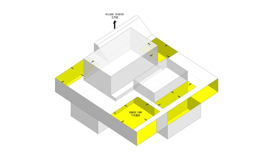 Una residenza unifamiliare qualsiasi, annegata in una schiera uniforme in un quartiere periferico di Pechino, è un volume compatto, situato approssimativamente al centro del lotto e circondato dal piccolo giardino di sua pertinenza. Il progetto dello studio locale TAOA, incaricato di affiancare alla casa un atelier d’architetto e uno d’artista, modifica radicalmente questa configurazione.