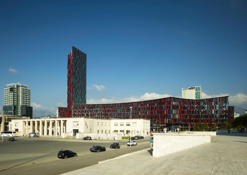 Prima di raggiungere piazza Skanderbeg, di fronte alla Galleria d’Arte Nazionale, mi imbatto nella Nuvola di Sou Fujimoto, padiglione per la Serpentine Gallery di Londra nel 2013, che ora è installata qui a Tirana. Fuori dal centro, la capitale albanese è un cantiere. Molti sono i nuovi edifici che presto sorgeranno in città. In questa città dove l’impronta italiana si sente, la densità delle filiali di Intesa Sanpaolo è superiore a quella di Milano e il supermercato dell’aeroporto è una Conad con i nomi dei prodotti in italiano sulle etichette, presto arriverà anche l'edizione albanese del bosco verticale di Stefano Boeri. Anche la fantomatica, tetra Piramide dovrebbe riprendere vita, con un progetto a cura di MVRDV. Il guest editor di Domus 2019 Winy Maas l‘ha reimmaginata come un centro dedicato ad arte, cultura e tecnologia; le ripide pareti su cui si inerpicano pericolosamente i ragazzini di Tirana, che hanno fatto dell’ex mausoleo il loro rifugio, saranno sostituite con dei gradini, un cambio di passo che vorrebbe rappresentare quello di un intero paese.