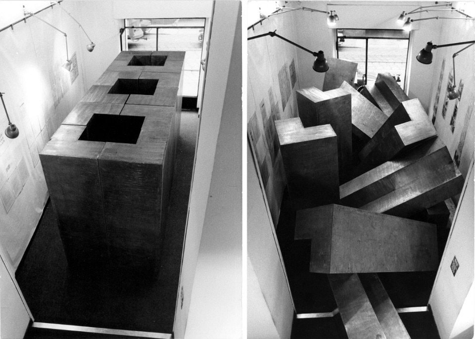 Per quanto riguarda la riedizione della mostra del ’73 l’opera Allegoria Studio per l’Anniversario, struttura in legno, 1954 – 1972 rappresenta uno degli elementi di maggior rilievo e la sua storia risulta assai complessa da interpretare anche se è opportuno tentare di farlo. Un primo interrogativo che è necessario porsi riguarda di quale Anniversario si tratti.