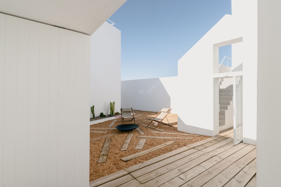 Situata su un’altura in Vale d’el Rei, con una spettacolare vista verso il paesaggio agreste e l’Atlantico in lontananza, Casa Cabrita Moleiro fa convivere le tracce di un passato rurale con un linguaggio architettonico contemporaneo. Nella ristrutturazione sono stati impiegati materiali di provenienza locale, riciclati e tenuti a vista, in contrasto al bianco candido caratteristico delle costruzioni della zona. La memoria del luogo è riconoscibile anche nella tradizionale “Açoteia Algarvia”, la copertura piana praticabile tipica della regione, con vista mare e storicamente utilizzata per essiccare i prodotti al sole.
