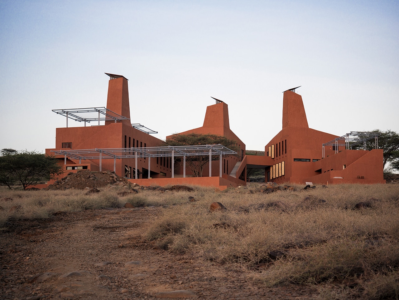Una delle sue ultime opere è invece lo Startup Lions Campus, un esempio di architettura sostenibile a tutto tondo, oltre che un landmark nel paesaggio brullo delle sponde del lago Turkana. Gli edifici del campus sono volumi di pietra locale rifiniti su tutte le superfici, anche le coperture non calpestabili, con lo stesso intonaco dalle tonalità calde e terrose. Il complesso si articola, non del tutto mimetico ma perlomeno ton-sur-ton, sul pendio che digrada verso lo specchio d’acqua e ne sfrutta la pendenza per definire sequenze di spazi all’aperto diversi per forma e quota. Profondamente integrato nel suo contesto – ossia nel suo paesaggio ma anche nelle dinamiche locali di produzione – lo Startup Lions Campus appare anche inspirato ad una sorta di “ragionevolezza universale”.