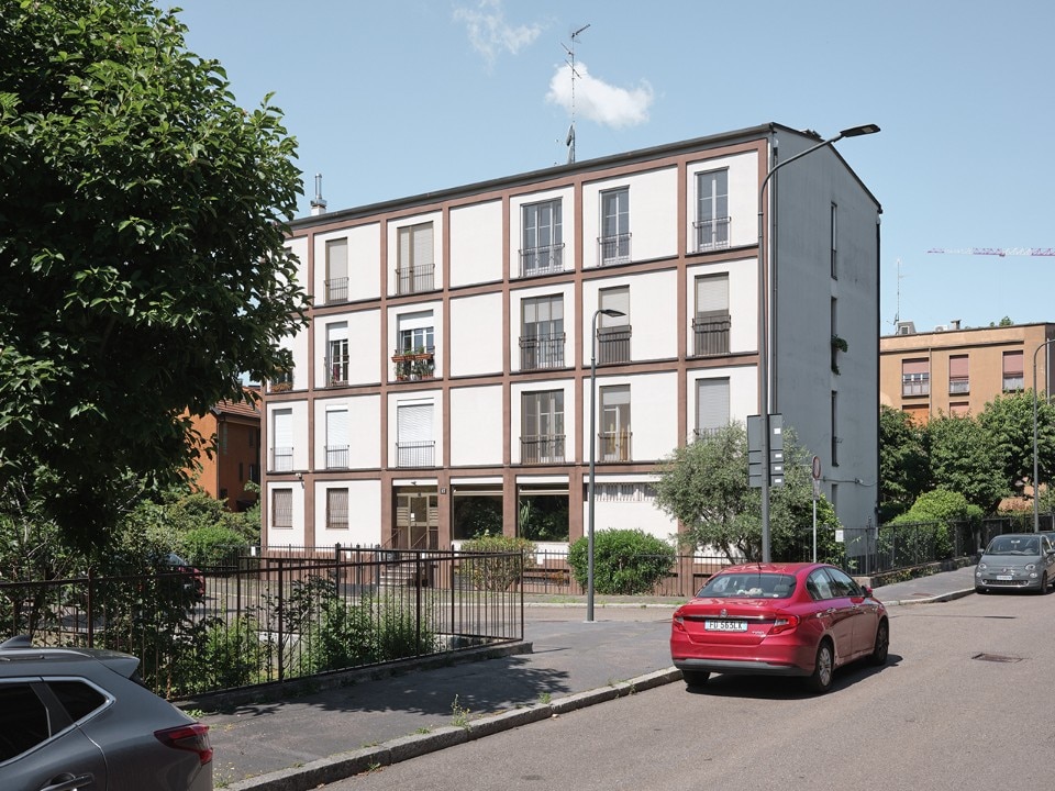 Così, al QT8 s’incontrano edifici in linea di grande scala, case d’abitazione di pochi appartamenti e ancora schiere diverse per dimensioni e modalità di accostamento dei loro moduli, progettate dallo stesso Bottoni, da Roberto Menghi, da Ettore Sottsass, da Gabriele Mucchi e da tanti altri. Nel loro insieme costituiscono un vero catalogo di tipologie residenziali, completato dagli edifici pubblici e dei servizi, che dovevano assicurare un’ideale autosufficienza al quartiere. La città, in effetti, non era lontana nemmeno all’epoca, ma era soprattutto una periferia industriale, e la metropolitana sarebbe arrivata soltanto più di un decennio dopo. La Chiesa di Santa Maria Nascente (1947-1955), di Vico Magistretti (1920-2006) con Mario Tedeschi, spicca per la peculiarità della soluzione a pianta centrale e soprattutto per l’asciuttezza del suo linguaggio, spoglio e quasi industriale, con la struttura in calcestruzzo lasciata a vista in facciata, ma non esibita. È il tempio scarno e rigoroso di una parte di città di cui ogni costruzione è realizzata all’insegna dell’ottimizzazione, non del lusso, e lo testimonia tramite la semplicità delle sue estetiche.