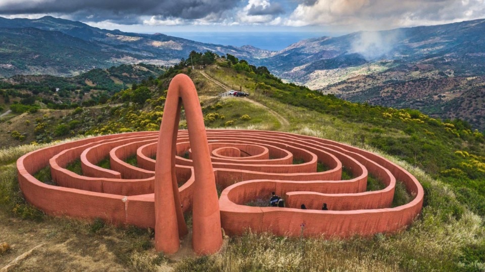 Vicino al piccolo borgo di Castel di Lucio, in cima a una collina nel Parco dei Nebrodi, c’è un immenso labirinto da percorrere: è il Labirinto di Arianna, una delle 11 opere del progetto Fiumara d’Arte. Più che un’architettura si tratta quindi di lavoro artistico, che trae origine dal mito di Teseo ed Arianna. È un percorso fisico a spirale ma non solo, e attraversarlo significa anche fare un cammino interiore.