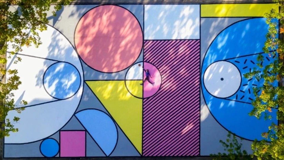 Un’artista belga ha trasformato un vecchio campo da basket in un’opera vivace e colorata