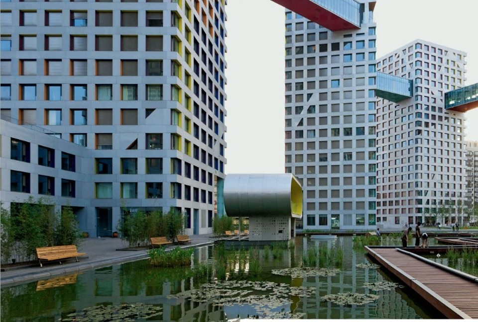 Uno degli episodi più rilevanti nati in seno al fervore preolimpico è sicuramente questo isolato completato nel 2009. Linked Hybrid non è solo uno dei primi complessi ad uso misto nel cuore di Pechino, ma è anche un’idea innovativa di città che sovverte e riarticola la mixitè funzionale in una configurazione tridimensionale. Oltre a 750 appartamenti, il programma include attività commerciali e ludiche che attraggono utenti non necessariamente residenti nell’isolato, determinando un grado di porosità e interazione pubblica fino ad allora sconosciuta nella città cinese. I percorsi si sdoppiano, aggiungendo ai vialetti che disegnano lo spazio aperto un sistema di passaggi sospesi, una rivisitazione delle “streets in the sky” brutaliste, che creano luoghi di incontro e distribuiscono spazi commerciali, espositivi e per lo svago. I 660 pozzi geotermici che si sviluppano per 100 metri nel sottosuolo testimoniano un’attenzione alla sostenibilità decisamente pioneristica rispetto all’epoca in cui il complesso è stato concepito.