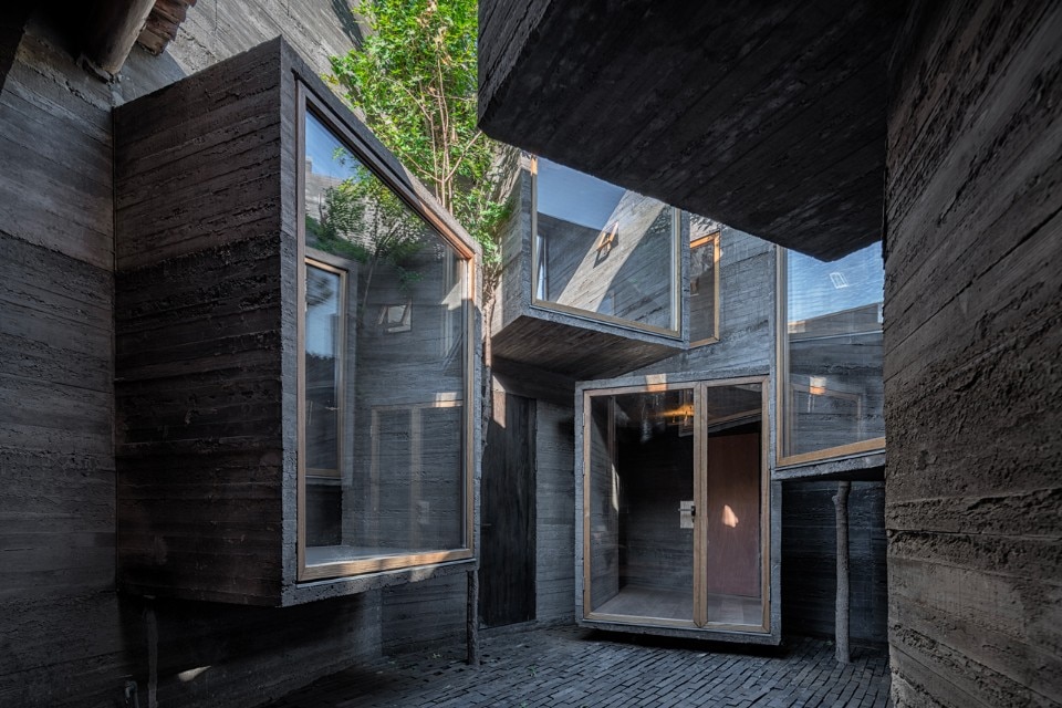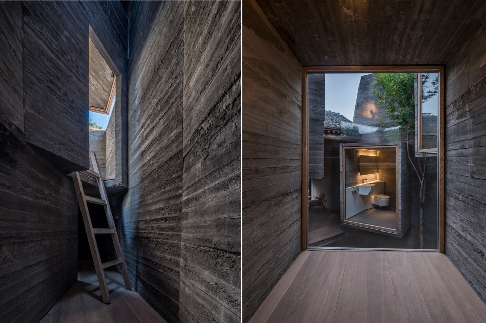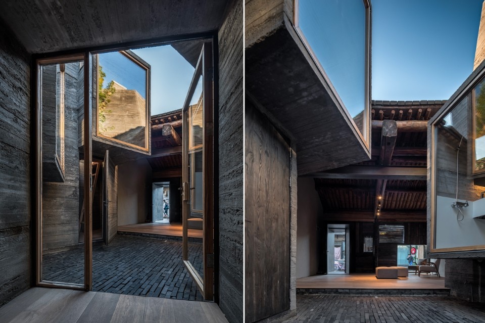 l’Hutong Filter dello studio ZAI, che propone una trasformazione centrifuga del cortile interno alla casa tradizionale (la demolizione selettiva di alcune parti di setto murario permette una smaterializzazione e filtra lo spazio senza più dividerlo nettamente); il Micro-hostel di ZAO/standardarchitecture, che invece lavora sulla forza centripeta del tipo a corte, dove l’aggiunta di minimi volumi in calcestruzzo conferisce un nuovo senso allo spazio, alla sua densità e alla sua consistenza materica.