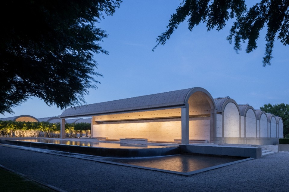 La poetica progettuale di Louis Kahn trova in questo edificio museale una sintesi perfetta tra forma e funzione, proporzione, distribuzione, materia e luce. Ubicato al centro di un parco urbano e composto da una bassa sequenza di sale longitudinali parallele e voltate, il Kimbell trova la sua prima ragione d’essere nella qualità luminosa ricercata da Kahn per valorizzare al meglio le opere gelosamente custodite in ambienti tanto classici quanto metafisici. Una luce zenitale pura proviene dal centro delle volte in cemento a vista, attraverso aperture filtrate con riflettori ondulati di alluminio perforato, mentre un altro tipo di luce più terrena e orizzontale proviene da sottili tagli sulle facciate delle corti interne aperte, e dal perimetro esterno in cemento e travertino. L'area circostante è ricca di altre architetture museali significative, dall’Amon Carter Museum di Philip Johnson al Museum of Art di Tadao Ando, fino all’ultimo intervento che riguarda proprio l’ampliamento del Kimbell Museum, operato da Renzo Piano nel 2013. Nel rispetto della scala progettuale e della distribuzione spaziale generale, la nuova ala di Piano, che aggiunge sale per mostre temporanee e un auditorium, si caratterizza per un impianto più aperto con perimetri più trasparenti, pur riservando grande attenzione alla distribuzione luminosa zenitale per la valorizzazione delle opere.
