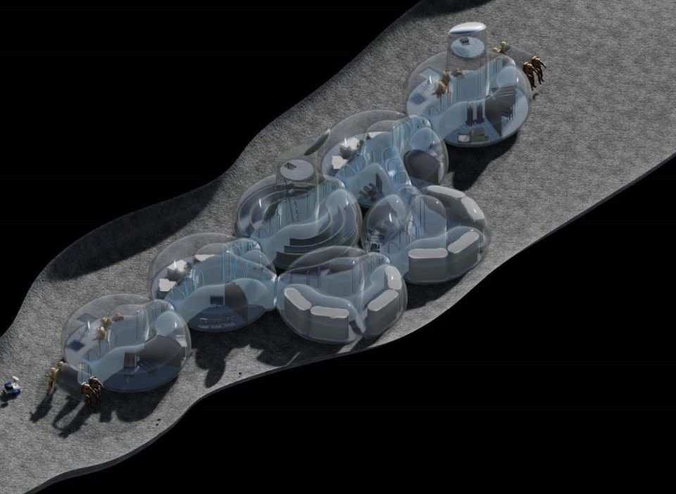 C’è la Clever Moon, nel cratere Tycho, con una scintillante cupola geodetica che a noi terrestri ha ricordato molto la Sphere (la già famosa arena immersiva per concerti ed eventi inaugurata alla fine dello scorso settembre a Las Vegas). C’è la Lunar Layer Base, all’interno di Schomberger (regione Polo Sud), che si declina sotto una serie di successive stratificazioni allestite a diverse atmosfere. Oppure c’è la Tectum, “una vera casa lontano da casa – si legge nella schermata introduttiva – con elementi abitativi gonfiabili ciascuno progettato meticolosamente per massimizzare l’utilizzo dello spazio senza compromettere il comfort. L'illuminazione morbida e circadiana imita i bagliori a cui siamo abituati sul nostro pianeta, creando un’atmosfera rilassante in tutta la stazione”. Ma non di sola estetica funzionale si potrà vivere lassù, tra le stelle, ed è per questo che i team al lavoro hanno affrontato ogni problematica connessa al compimento della loro avveniristica missione: la protezione dell’insediamento dalle radiazioni cosmiche e solari, le fonti di approvvigionamento energetico, lo smaltimento dei rifiuti, i sistemi di agricoltura idroponica e ovviamente la costruzione vera e propria della stazione, con largo impiego di stampanti 3D fatte funzionare in situ con la regolite (polvere lunare) al posto della plastica.