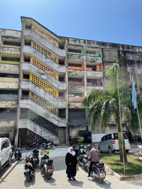 L’espansione verso l’altra sponda del torrente, “Ng’ambo”, iniziò nella seconda metà del diciannovesimo secolo. Qui, la popolazione, composta da vari gruppi etnici e sociali, accoglieva mercanti, schiavi liberati, pescatori e commercianti. Durante il dominio britannico, Ng’ambo vide la crescita di diverse comunità, tra cui arabi, swahili, indiani, persiani, comoriani, goani e malgasci, fino ad equiparare le dimensioni di Stone Town. Queste comunità costruirono case in uno sviluppo organico, creando un tessuto urbano caratterizzato da case swahili, beyts omaniti e dukas indiani. Dopo l’indipendenza, il governo socialista di Karume introdusse rigidi piani di ricostruzione modernista, che portarono alla creazione di massicce unità abitative note come “Treni”, ora abitate da famiglie a medio e basso reddito, a due passi dalla storica città protetta dall’Unesco.