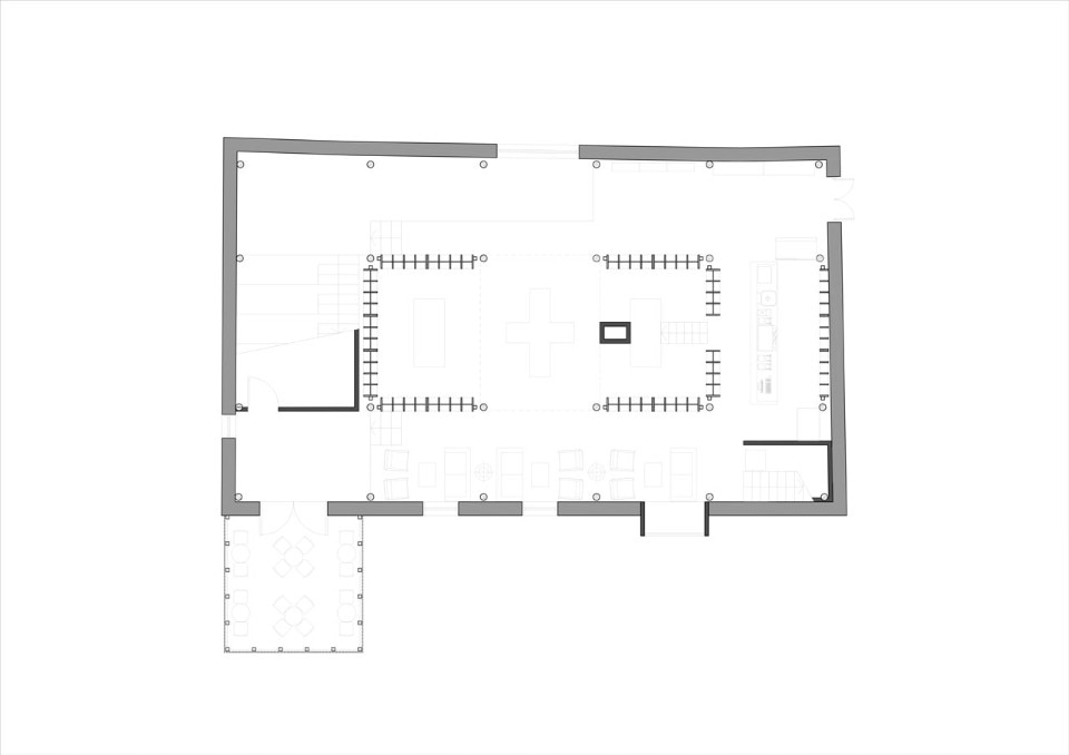 Una nuova libreria con servizi complementari, tra cui spazi espositivi, un piccolo teatro, e un bar, nel cuore di una cittadina tradizionale, introduce una nuova esperienza all’interno di una serie di corti che in passato ospitavano una prestigiosa accademia. Caratteri storici e contemporanei si fondono, tenuti insieme da due nuove gallerie per l’esposizione dei libri che, attraversando un padiglione, connettono fisicamente le teste del sistema costruito. Una di queste, sullo spazio pubblico principale, viene totalmente ripensata con un nuovo corpo in calcestruzzo che racchiude il teatro ed espone alcuni dei volumi in vendita, verso la piazza. Si assorbono le dimensioni delle corti e gli imponenti alberi, inglobati nelle gallerie.
