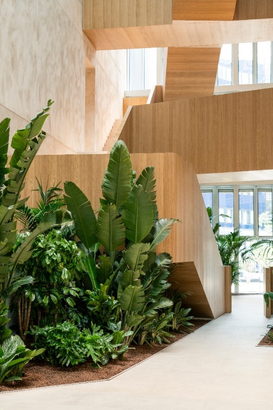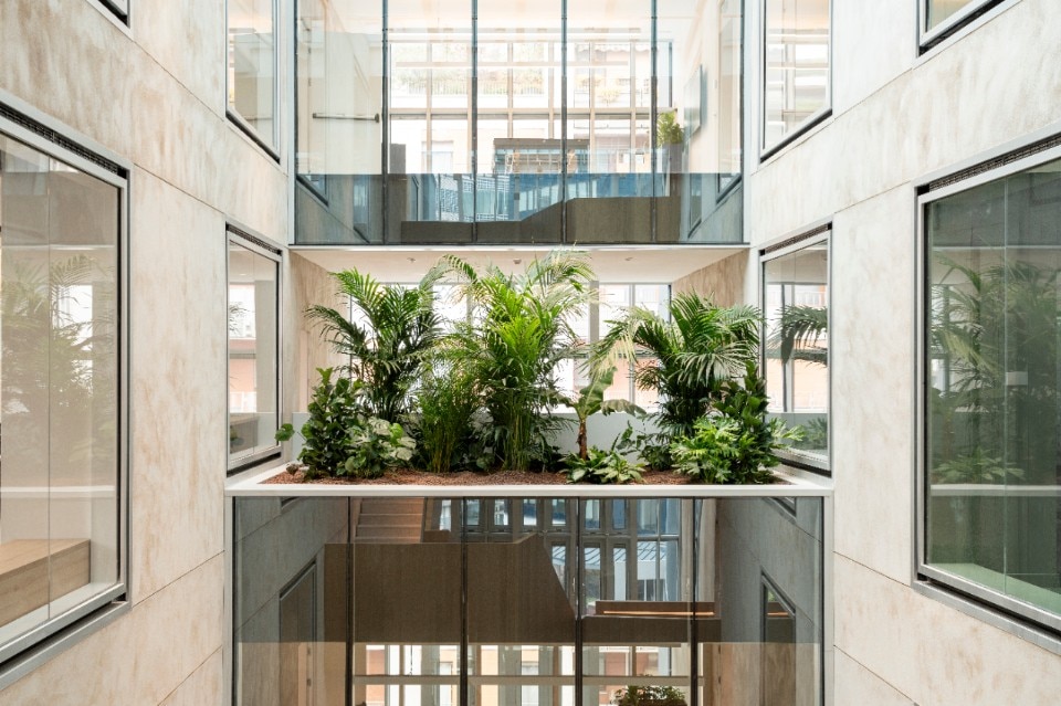 Con Lybra, il nuovo Headquarter di Sap Italia firmato da Park nel distretto di Porta Romana, lo studio introduce il tema dello spazio collettivo. L’edificio, composto da due corpi principali, è attraversato dal Green Void, una grande serra bioclimatica centrale, vetrata, inondata di luce naturale e abitata da vegetazione tropicale. Al suo interno si sviluppa una scenografica scala in legno che attraversa verticalmente lo spazio. Più che un semplice atrio, il Green Void è pensato come un’infrastruttura: “non è solo uno spazio di passaggio, ma un dispositivo ambientale e percettivo. Una condizione di luce, trasparenza e natura che connette i due volumi e genera continuità fisica ed emotiva” commenta Pagliani.