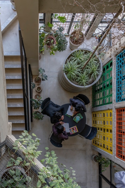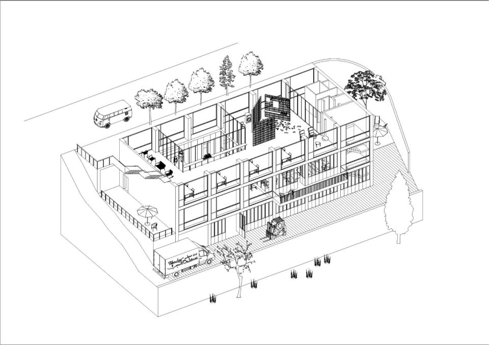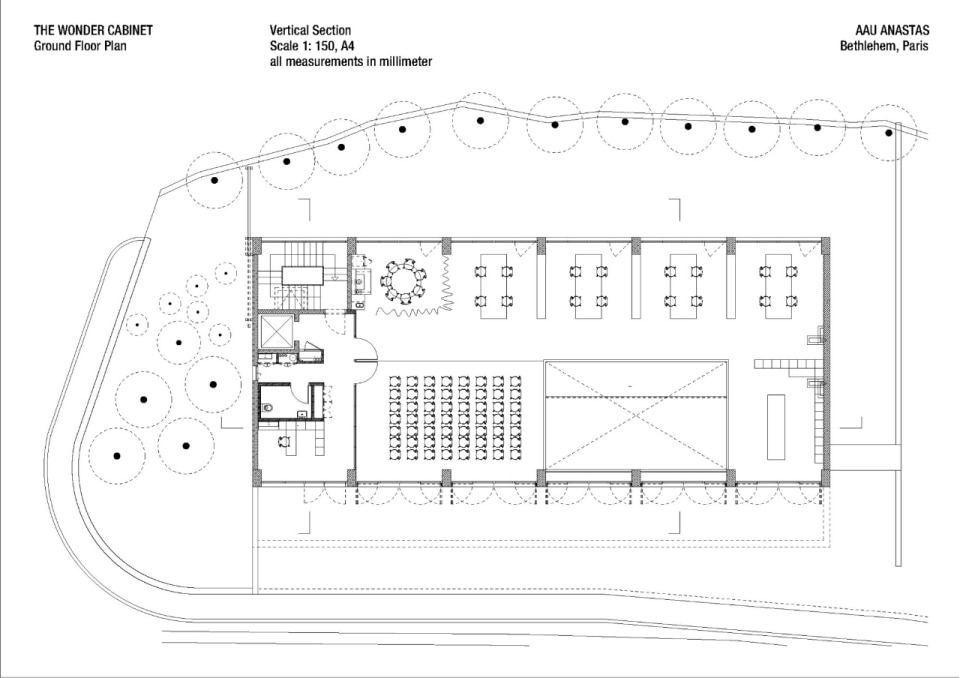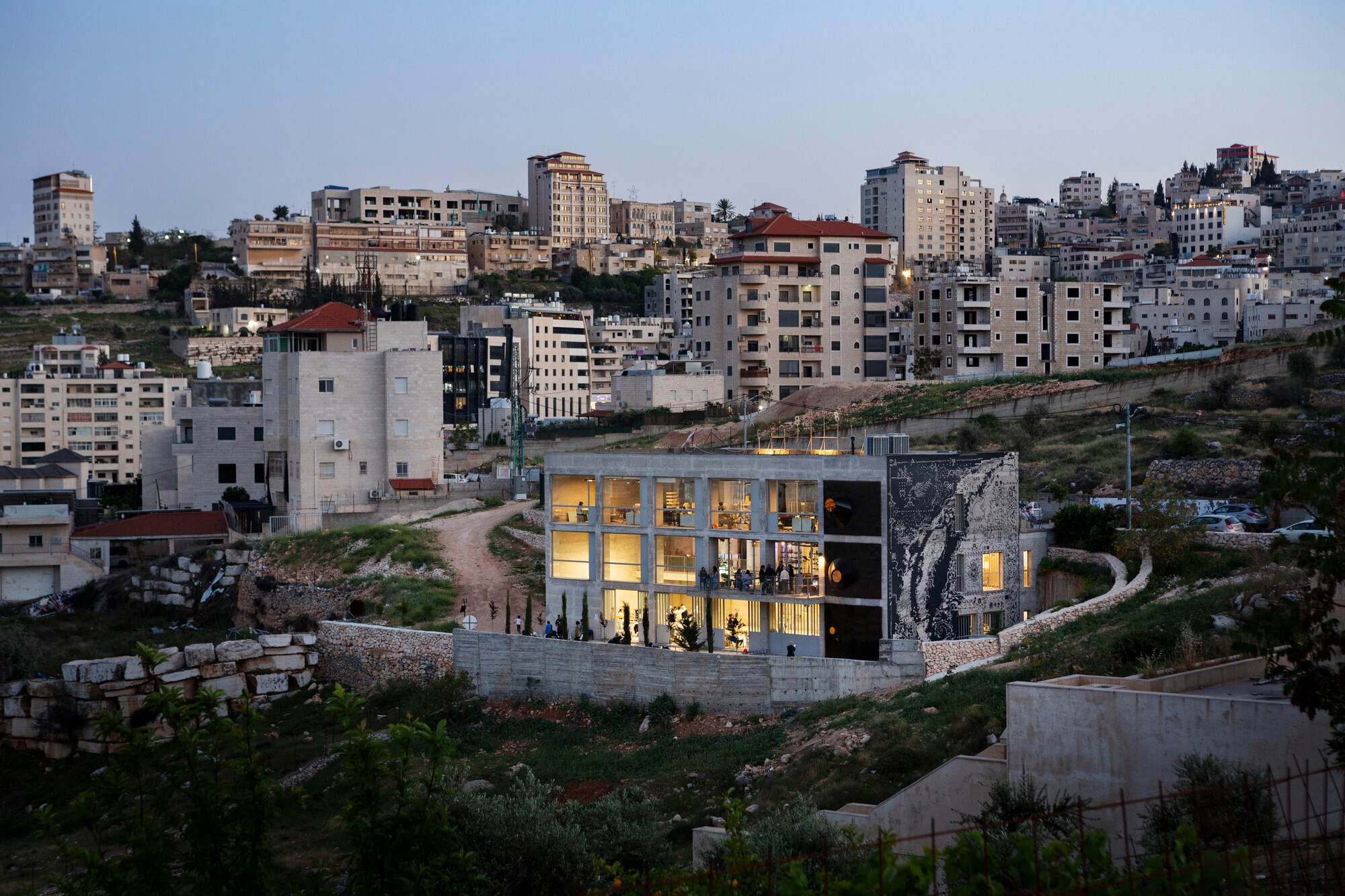 A Betlemme, affacciato sulla valle di Al-Karkafeh, il Wonder Cabinet è un edificio di tre piani dedicato alla creatività e alla produzione artigianale. Pensato come spazio no-profit, integra laboratori, uffici, caffè, ristorante e un’area performance nel seminterrato. La sua architettura privilegia la trasparenza: partizioni vetrate mettono in comunicazione funzioni diverse, mentre un vuoto centrale collega i livelli e accompagna lo sguardo verso il paesaggio esterno. Artigiani locali hanno contribuito agli arredi e alle finiture, rendendo l’edificio un manifesto della produzione culturale palestinese come forma di resistenza e autoaffermazione.