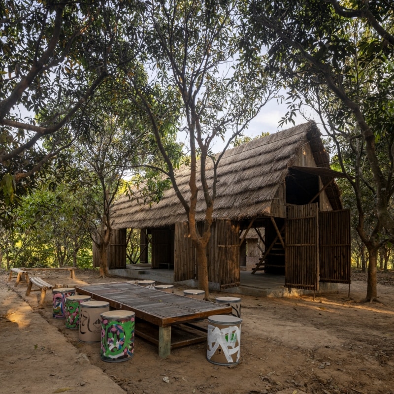 Il progetto comunitario di Marina Tabassum Architects risponde a una delle urgenze più drammatiche del Paese: gli sfollamenti dovuti alle inondazioni e al cambiamento climatico. Khudi Bari è una casa leggera ma resistente, composta da una struttura modulare in bambù e connettori d’acciaio, facile da smontare e rimontare da sole tre persone con strumenti di base. Il design prevede due livelli: quello inferiore dedicato alla vita sociale e privata, quello superiore destinato al riposo e pensato come rifugio in caso di alluvione. Un aspetto molto rilevante del progetto è la sua adattabilità in diversi contesti: le facciate sono state pensate per essere realizzate con materiali reperiti localmente, diversi in base alla disponibilità.