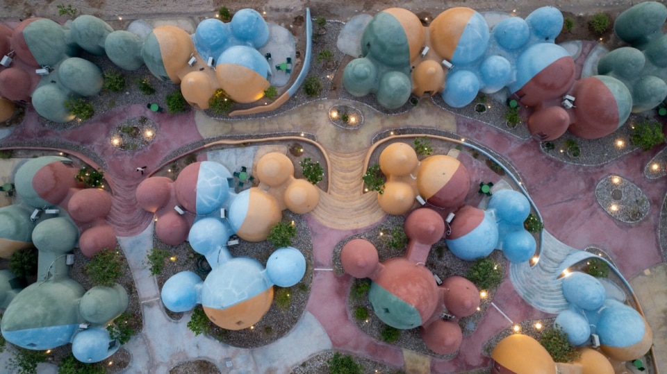 Sull’isola di Hormuz, chiamata “arcobaleno” per i suoi terreni variopinti, il progetto Majara Residence and Community Redevelopment ha dato vita a un arcipelago di cupole che ospitano residenze, spazi comunitari e centri culturali. Sono circa 200 le cupole, ispirate alle tradizionali cisterne per l’acqua, realizzate con materiali locali e disposte organicamente per riflettere il paesaggio. Il complesso progettato da ZAV Architetti / Mohamadreza Ghodousi ospita una biblioteca, laboratori di artigianato, spazi di culto, in un luogo segnato da conflitti e marginalità in cui l’intervento mira a creare nuove opportunità economiche e sociali.