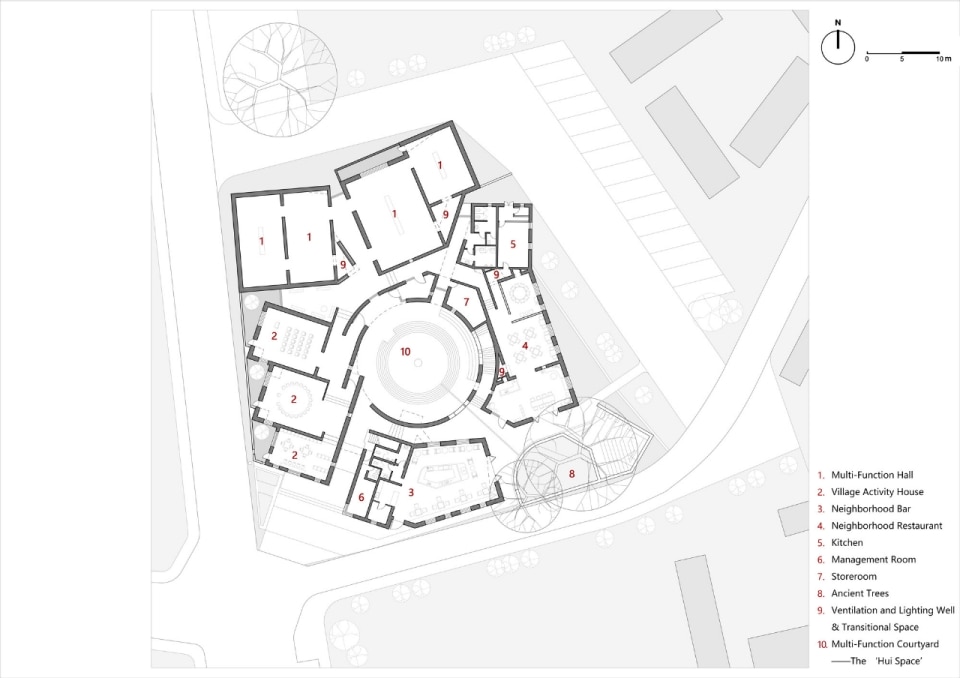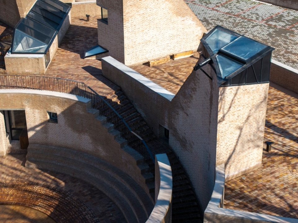 A Hohhot, in Mongolia, sorge un centro che intreccia funzioni sociali, culturali e religiose per una comunità rurale. Con i suoi 1.276 mq, è organizzato attorno a una corte circolare centrale che funge da piazza per attività collettive, con un ampio tetto praticabile di 786 mq. Il West Wusutu Village Community Centre è costruito interamente con mattoni riciclati da demolizioni locali, e integra soluzioni sostenibili come torri di ventilazione e lucernari automatizzati, che garantiscono comfort naturale ed efficienza energetica. Il risultato è un luogo inclusivo che ricuce i legami comunitari e diventa punto di riferimento per gli Hui musulmani, lontani dalla loro moschea principale.
