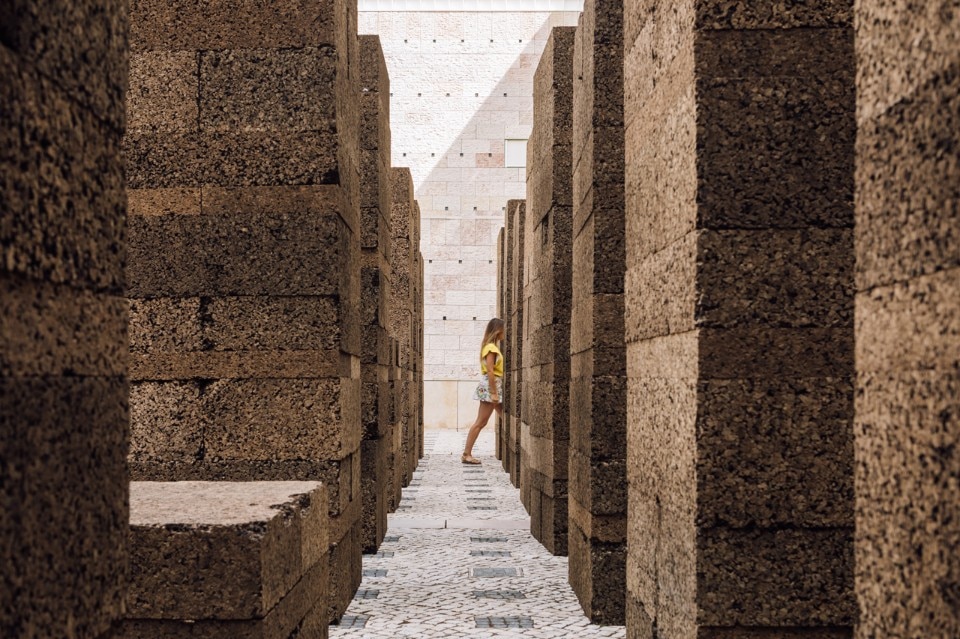 "A square in summer", l'installazione architettonica a cielo aperto dello studio portoghese Promontorio per il 25° anniversario del Centro Culturale di Belém, Lisbona, 2018.