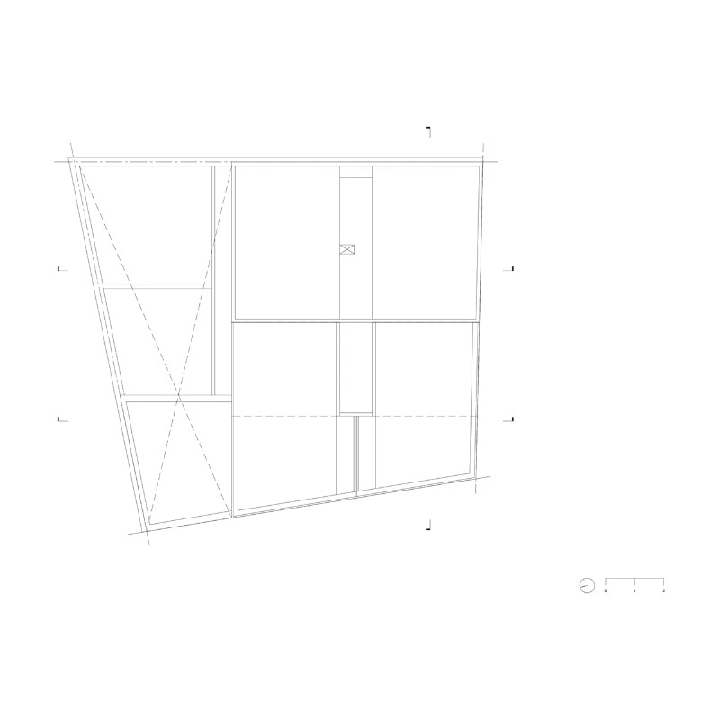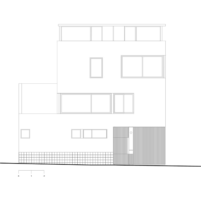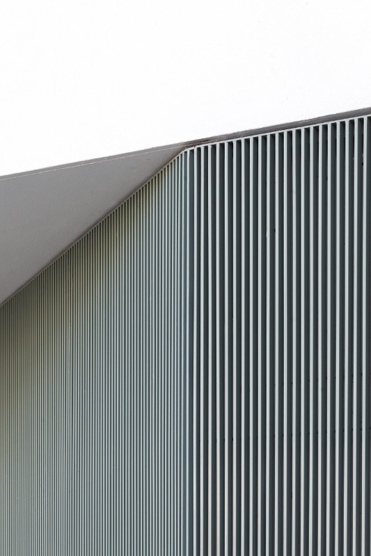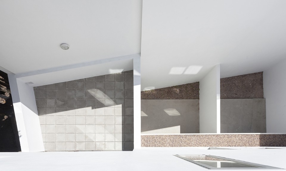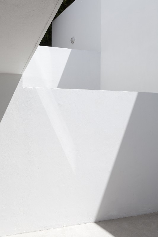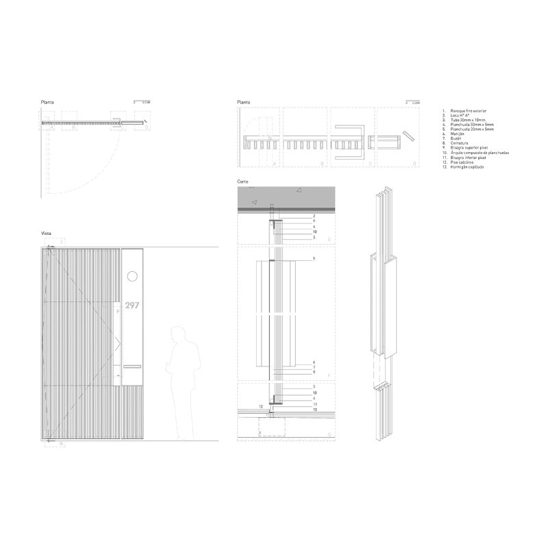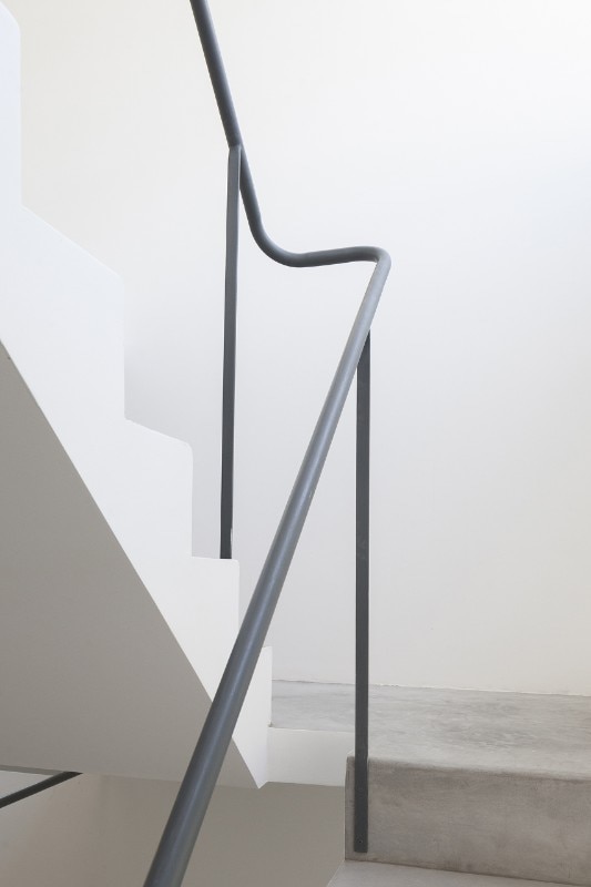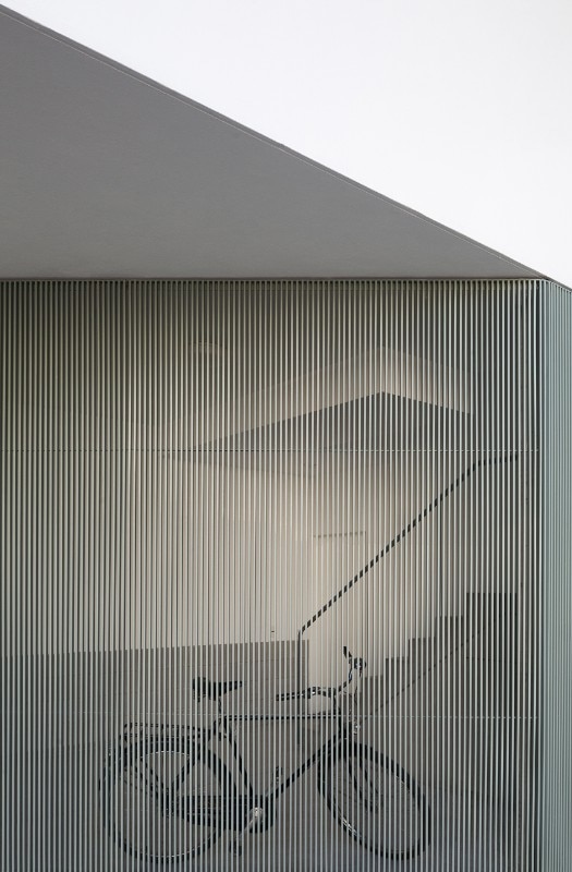 A partire da questo volume “regolamentare”, la qualità del progetto risiede nella riuscita alternanza dei pieni e dei vuoti, che permette ad ogni alloggio di disporre del proprio spazio all’aperto, che si tratti di una loggia, di un balcone, o dell’ampio tetto-terrazza. E se nelle finestre a nastro angolari, nei telai che emergono in copertura e nel bianco candido dell’intonaco sembrano risuonare echi lontani e rielaborati del Movimento Moderno, la griglia metallica verde è un interessante dispositivo studiato ad hoc per calibrare il livello di privacy e la continuità con lo spazio pubblico della piccola hall d’ingresso.