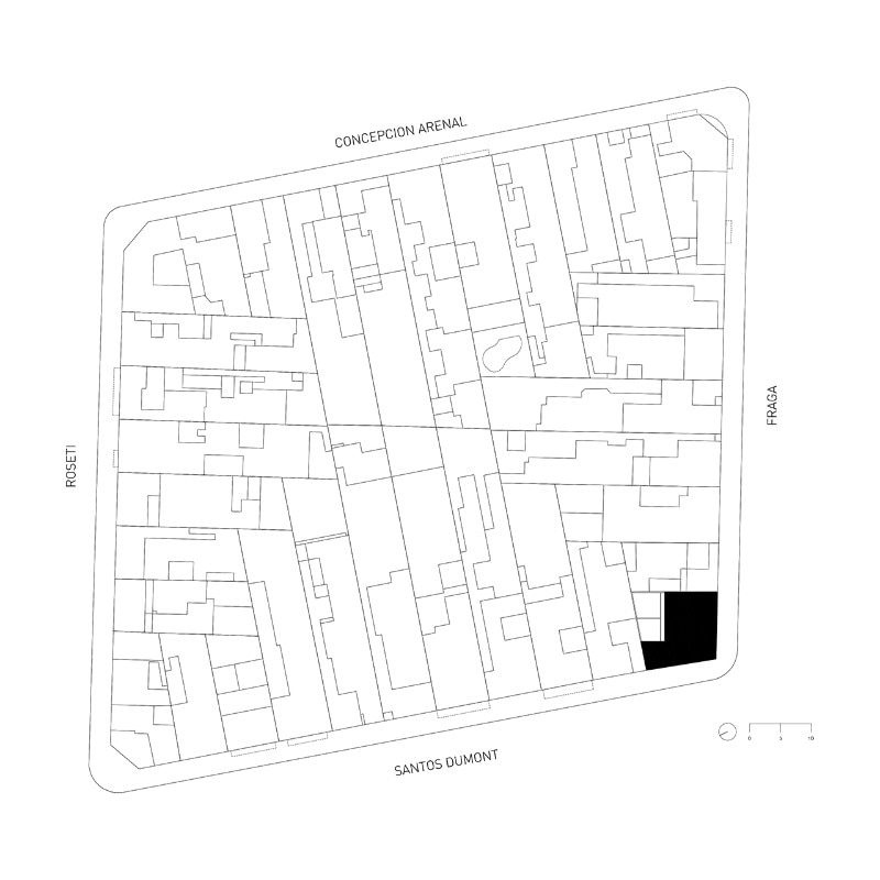 Chacarita è un quartiere della Buenos Aires del primo Novecento, situato nei pressi del ben più celebre Palermo, di cui sta ricalcando, con alcuni anni di ritardo, le stesse trasformazioni sociali e architettoniche. La gentrification e la diversificazione funzionale di Chacarita, dove stanno rapidamente confluendo case di produzione, studi televisivi, gallerie d’arte, atelier, ristoranti e molto altro, trasformano il tessuto edilizio esistente – che comprende molte storiche “casas chorizos”, le “case-salsiccia” dove un’unica sequenza di stanze affaccia su di un patio centrale – ma comportano anche una progressiva densificazione dei vuoti disponibili.