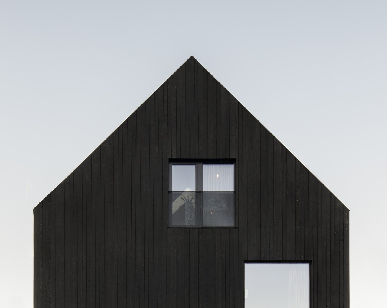 La casa viene rivestita interamente con doghe di legno di pino catramato - un tradizionale metodo svedese di conservazione di facciate e tetti in legno - che conferisce al volume un' immagine rigorosa e neutra nella varietà di forme e colori del contesto in cui si inserisce.