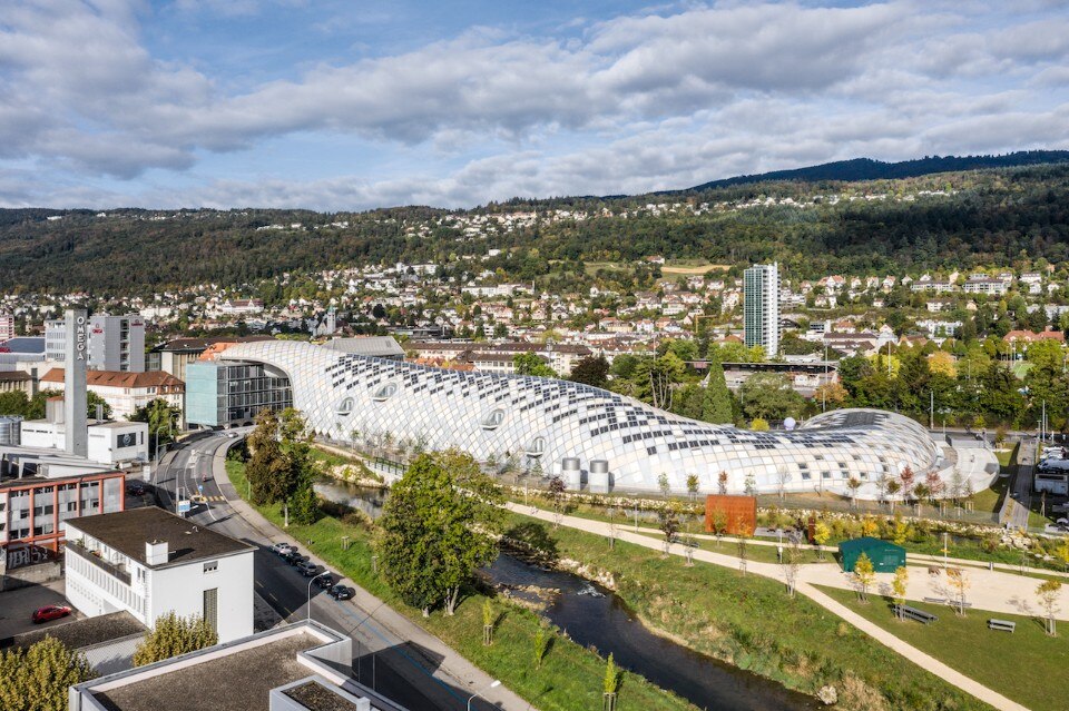 Il nuovo quartier generale del gruppo Swatch firmato da Shigeru Ban è articolato in tre parti. Il fulcro è la struttura che richiama la silhouette di un serpente, e che accoglie i reparti nazionali e internazionali dell’azienda. A questa si aggiungono la nuova manifattura Omega e la Cité du Temps.