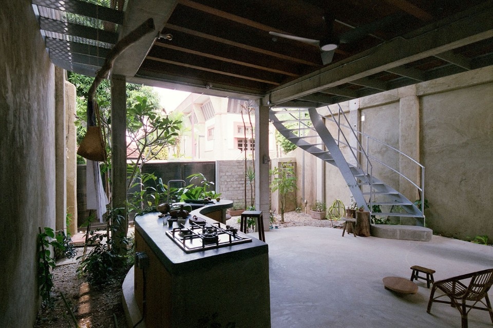 “Allora questa casa è una dichiarazione contro l’aria condizionata?”. Hao ride, poi mi racconta della convergenza fra lui e i clienti, una coppia con tre bambini: entrambe le parti volevano sperimentare, con l’obiettivo di dar forma a una casa in cui la vita potesse essere ‘naturale’, nel senso di spontanea e confortevole. Questo è il presupposto di un progetto di uno spazio domestico in cui è centrale l’esperienza fisica e il rapporto con l’ambiente – dal contatto con la pioggia e il vento, alle chiacchiere dei passanti. La fotografie esprimono infatti il senso del progetto, hanno una qualità estetica legata all’esperienza più intima dello spazio abitato, più che – come accade il più delle volte – alla spettacolarizzazione di ciò che si presenta.