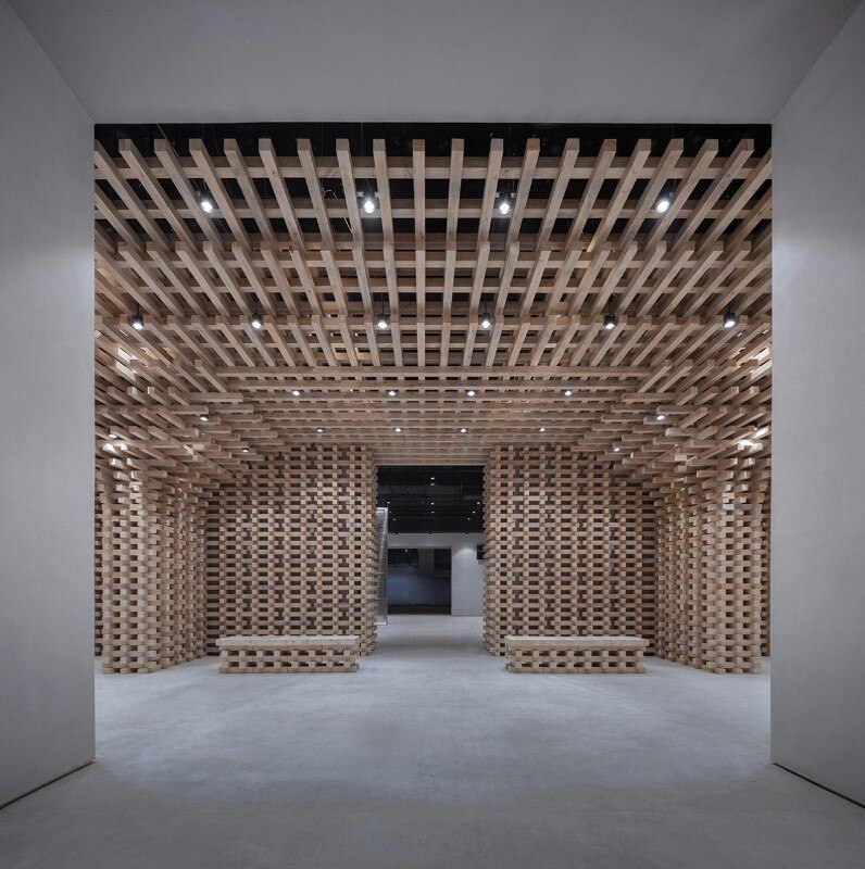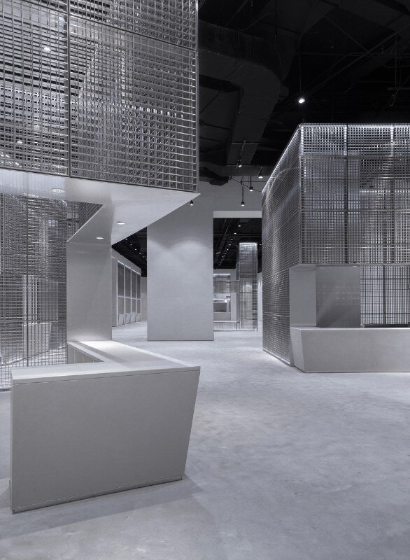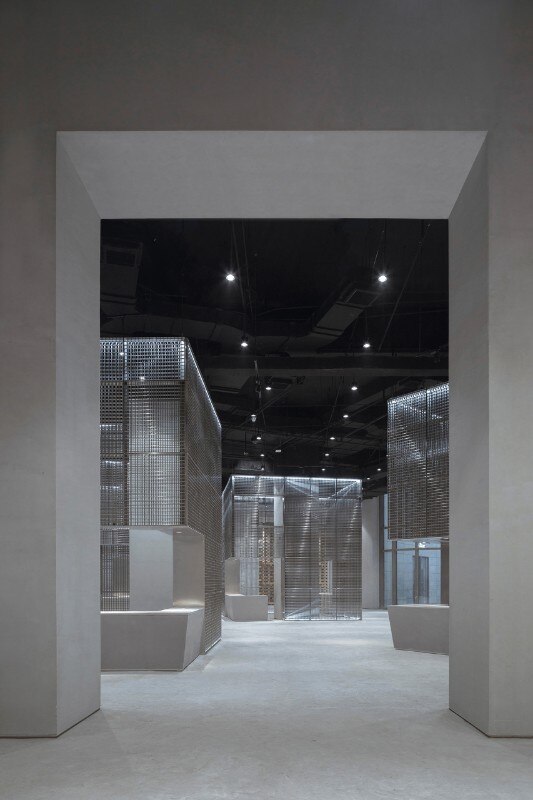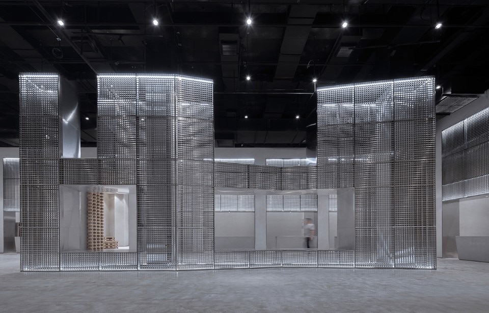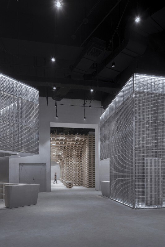È a partire dalle limitazioni esistenti che BANDe Architects progetta una sorta di masterplan in miniatura che divide lo spazio in tre aree principali. Queste sono caratterizzate da materiali economici, pannelli quadrati di rete metallica e lunghe aste di legno, usati in maniera quasi scultorea. L'accoppiata rappresenta le due anime opposte della Cina: quella storica e che rispetta tradizioni e tecniche antiche, e quella contemporanea, accelerata e con lo sguardo verso il futuro.