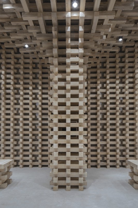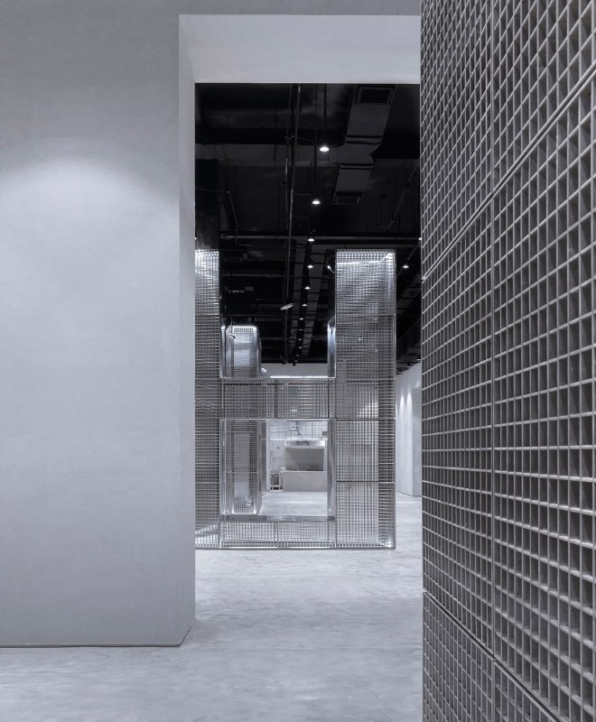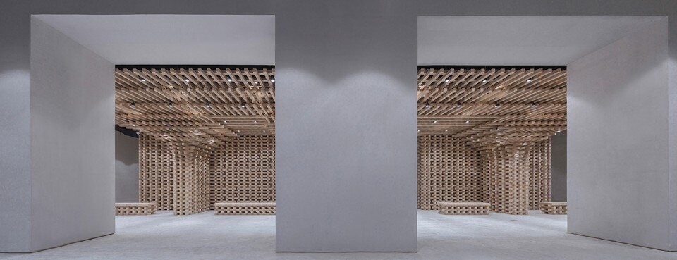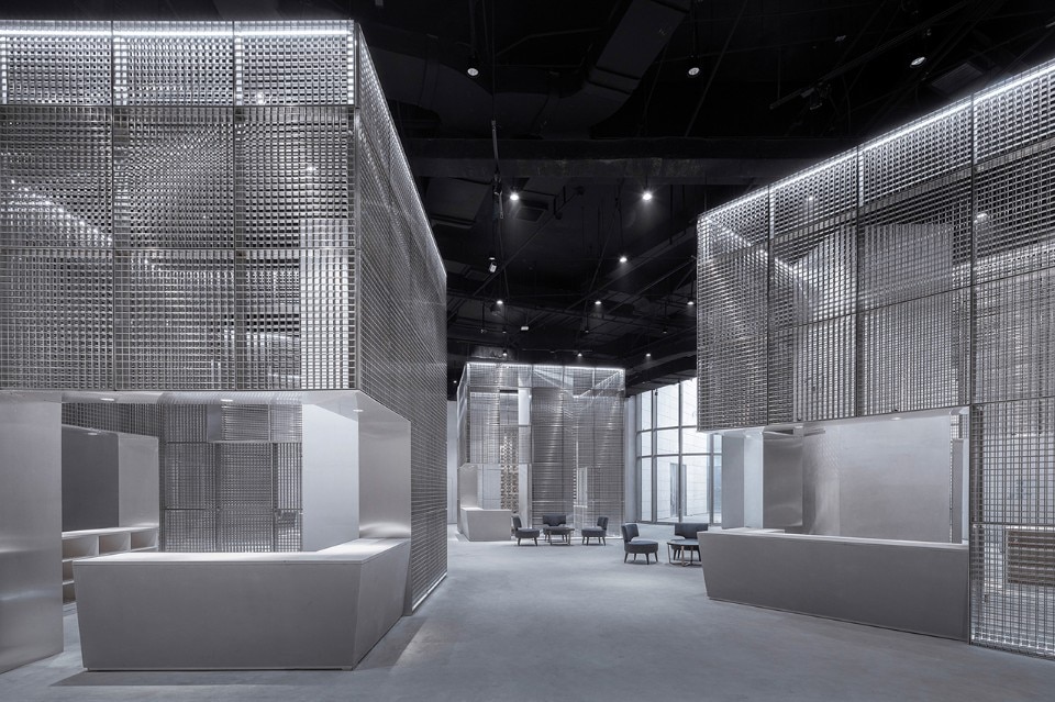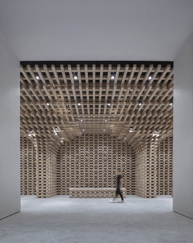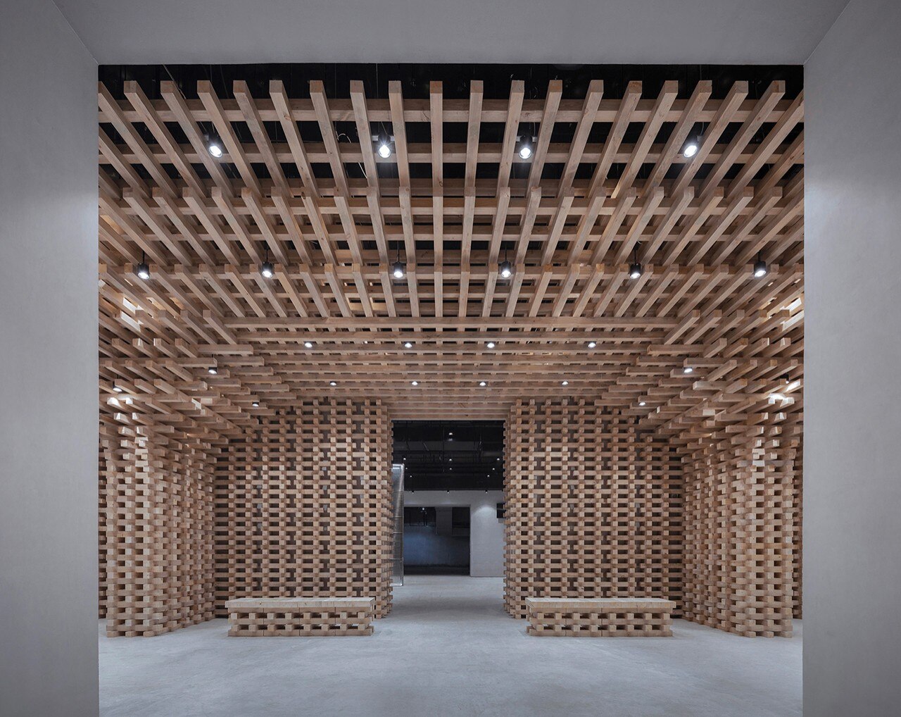 È a partire dalle limitazioni esistenti che BANDe Architects progetta una sorta di masterplan in miniatura che divide lo spazio in tre aree principali. Queste sono caratterizzate da materiali economici, pannelli quadrati di rete metallica e lunghe aste di legno, usati in maniera quasi scultorea. L'accoppiata rappresenta le due anime opposte della Cina: quella storica e che rispetta tradizioni e tecniche antiche, e quella contemporanea, accelerata e con lo sguardo verso il futuro.