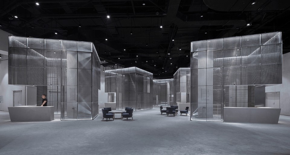 Progettato da BANDe Architects, GreenMonster Lab si trova nel piano interrato di un centro culturale di Pechino, che include laboratori, spazi espositivi e dedicati all’intrattenimento, showroom, una libreria… Lo studio cinese colonizza questi spazi flessibili e indifferenziati con scenografie di grande impatto, che hanno il compito principale di dare un nuovo ordine agli ambienti che, essendo stati concepiti come spazi di servizio, si presentavano come non-luoghi disordinati e inabitabili.
