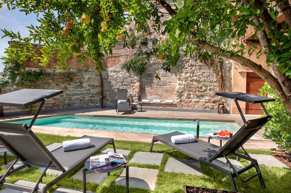La ristrutturazione, seguita dall’architetto Ugo Costantino, ha portato alla realizzazione di sei camere per gli ospiti che variano dai 30 ai 50 mq. La corte centrale, su cui si affaccia una terrazza al primo piano, è stata suddivisa geometricamente ed è circondata da un porticato. La struttura include inoltre una piscina, una zona relax con solarium e una cantina per la conservazione dei vini.