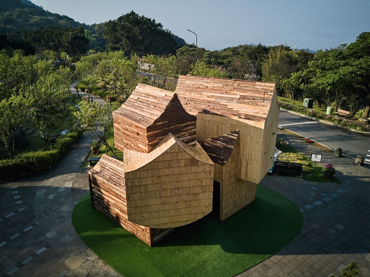 Boolean Birdhouse, situato in un paesaggio montano di Taiwan, è un padiglione progettato da Phoebe SaysWow Architects ispirato al concetto delle casette per uccelli. Con l’obiettivo di avvicinare le persone a questa specie locale di animali, gli architetti hanno creato una sorta di grande rifugio in legno sovrapponendo cinque case singole, ognuna con un tetto curvilineo e inclinato. Il risultato è un edificio fatto di volumi interconnessi, i cui spazi interni sono ottenuti con un’operazione booleana per eliminare le zone sovrapposte.