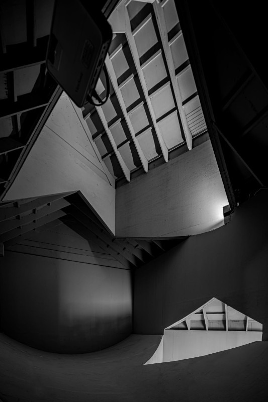 Gli spazi interconnessi progettati da Phoebe SaysWow Architects definiscono un rifugio di legno i cui interni ricordano la scenografia di un film espressionista.