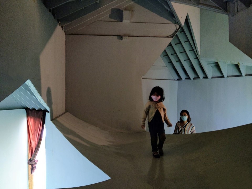 Le facciate sono rivestite con scandole in legno di Taiwania, un tipo di cipresso, o con finiture in corteccia. Utilizzato principalmente come area espositiva, il padiglione ospita inoltre sette piccoli rifugi per uccelli sulla facciata, perseguendo l’idea di un luogo in cui uomo e animali possano convivere. Gli interni bianchi, con pavimenti curvi e superfici disconnesse, ricordano la scenografia di un film espressionista. Per concludere l’esperienza, alcune proiezioni invitano i visitatori a fermarsi e a rilassarsi.