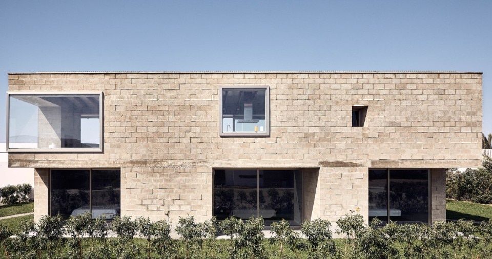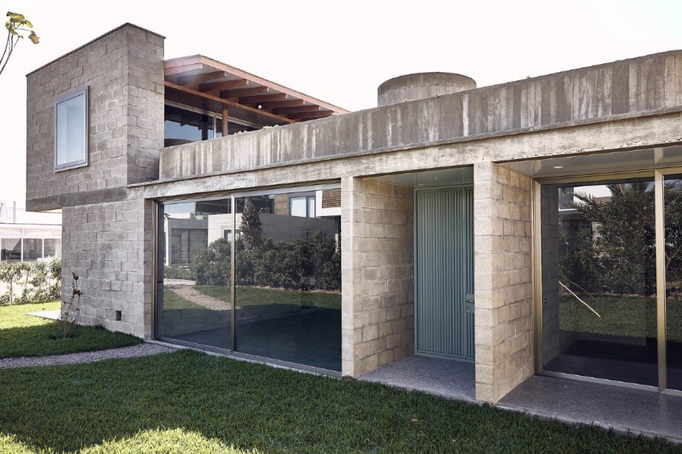 La casa si protegge dai forti venti provenienti da Sud con un fronte chiuso, mentre sui due lati della terrazza, delle vasche verdi che fungono anche da parapetti, contribuiranno alla loro mitigazione grazie a una folta vegetazione.