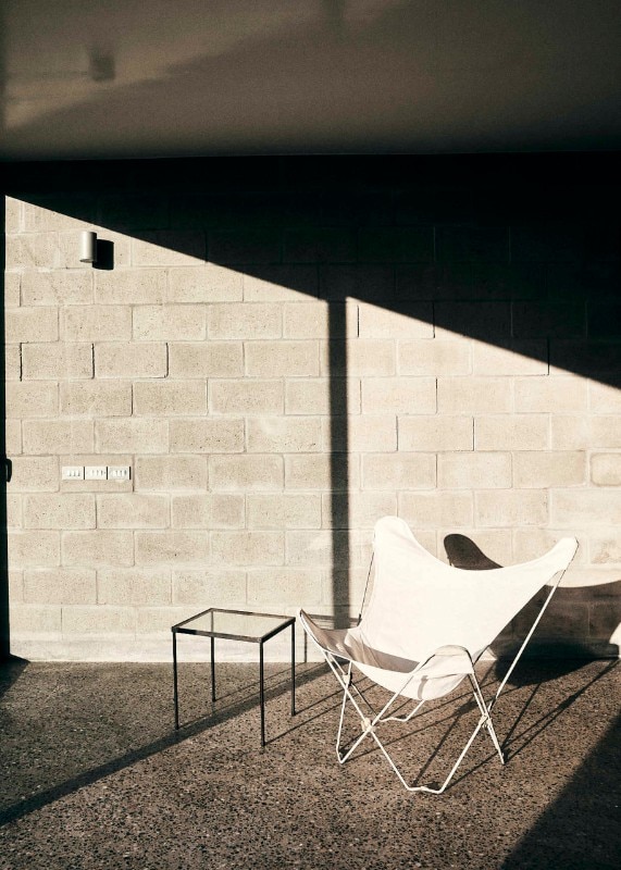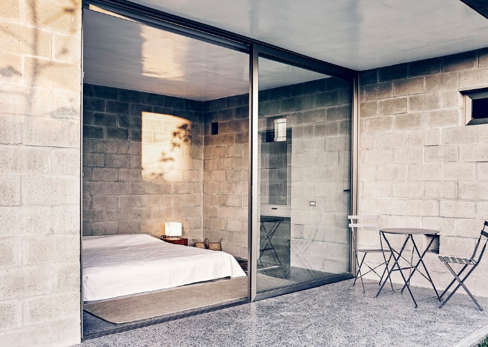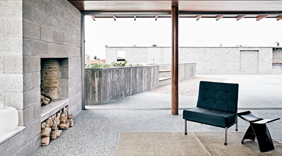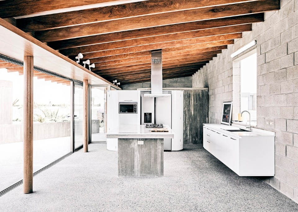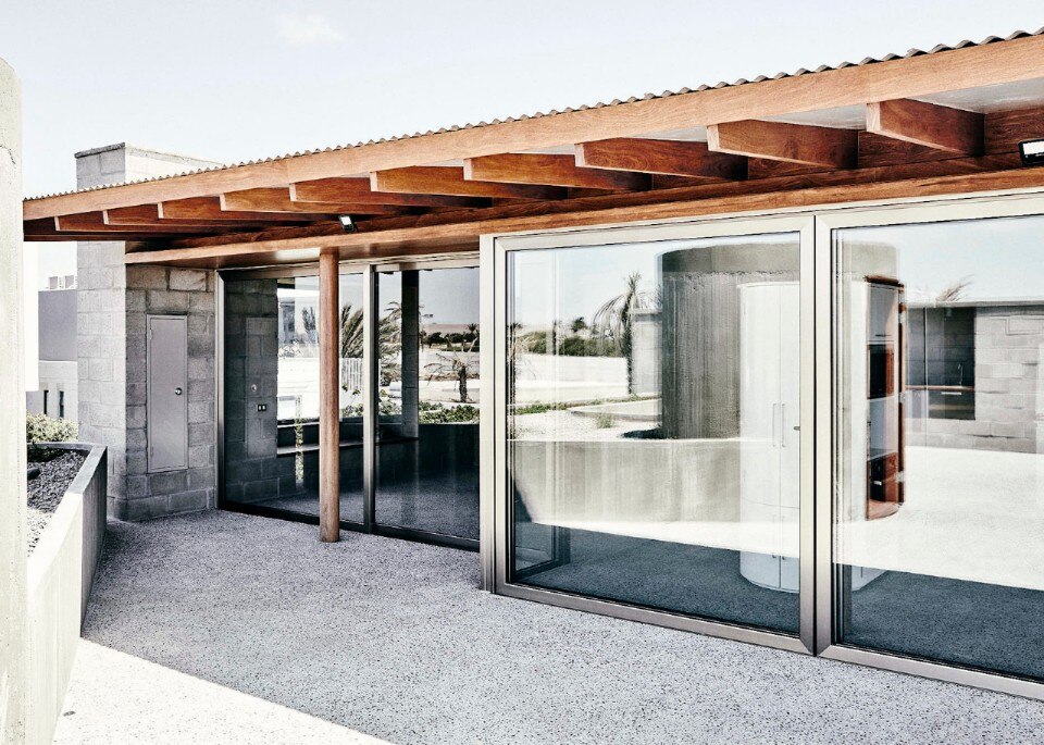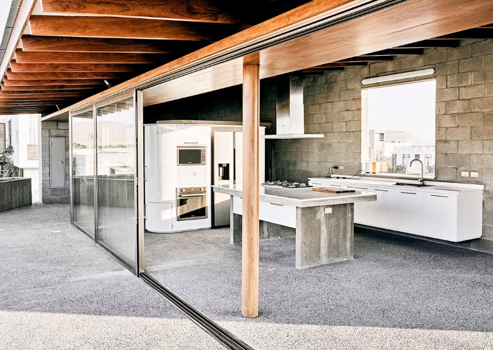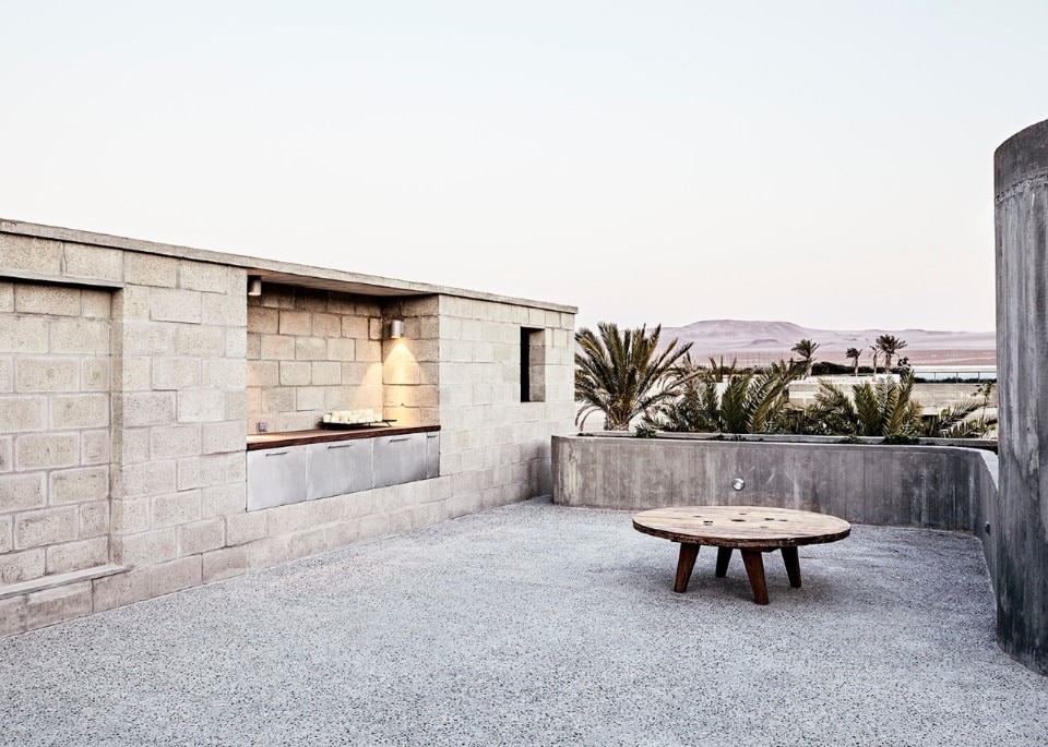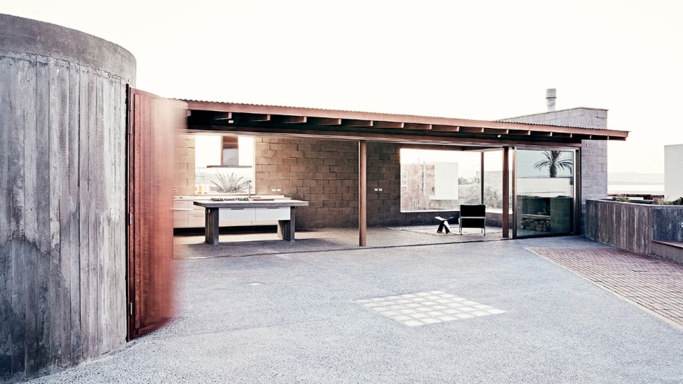 Textil House si sviluppa su due piani: a piano terra la zona notte, a piano superiore la zona giorno con con una grande finestra ad angolo vista tramonto sulla baia e un'ampia terrazza che da cui guardare l'oceano e il deserto.