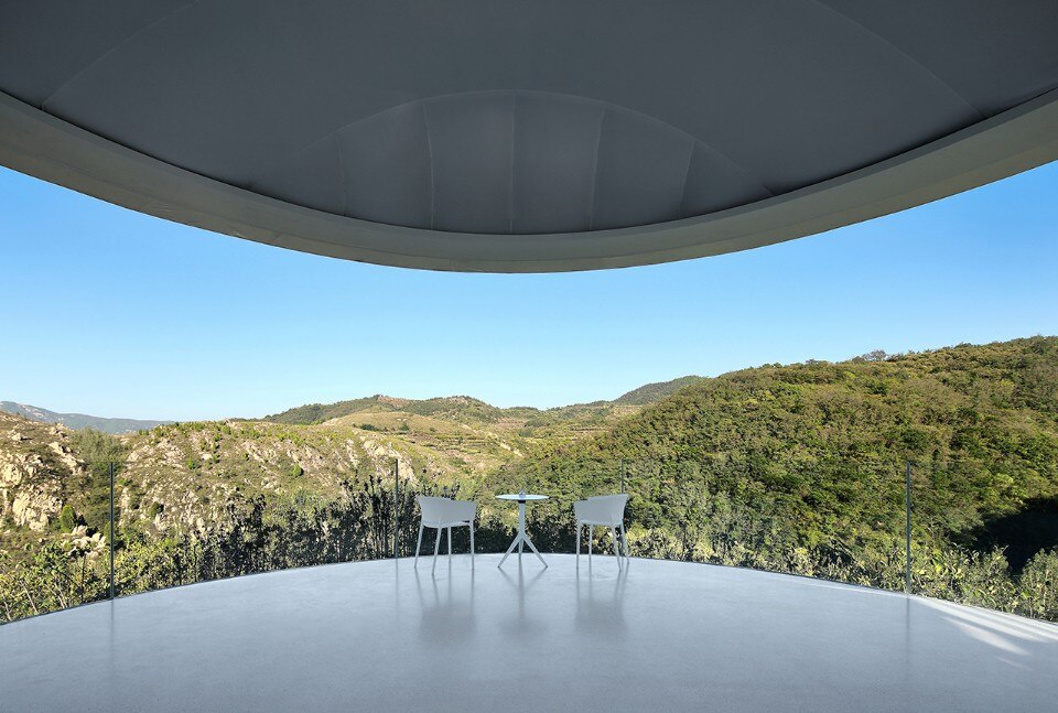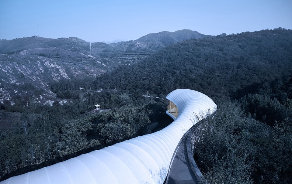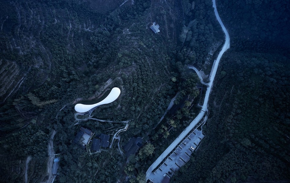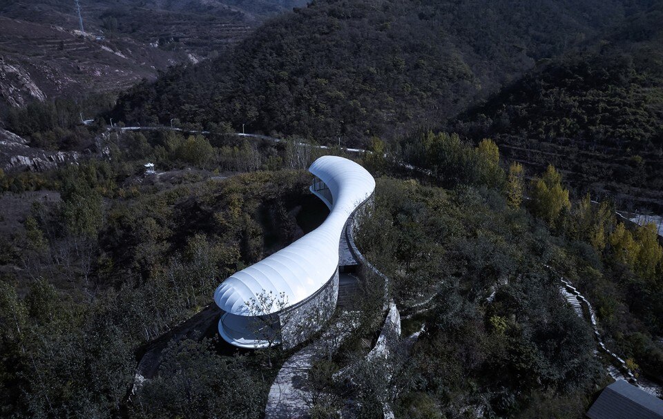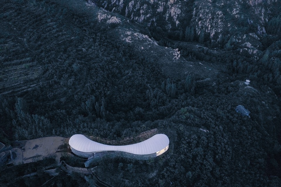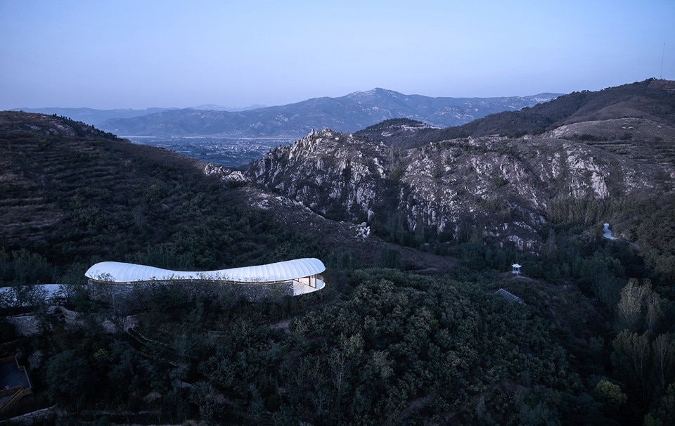 Con questo pensiero, Gad · Line + Studio ha costruito un padiglione sul Monte Tai che sembra fluttuare sul paesaggio roccioso delle cinque montagne sacre. Gli architetti cinesi vogliono liberare l’architettura dal superfluo e raggiungere un’estrema leggerezza e essenzialità. La forma fluida e il colore bianco di Studio Jiunvfeng creano un contrasto voluto con l’ambiente. Intenzione dei progettisti è quella di creare “una nuvola galleggiante che si libra tra le montagne”.