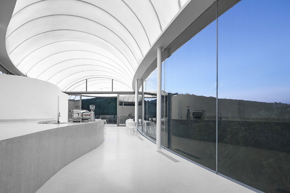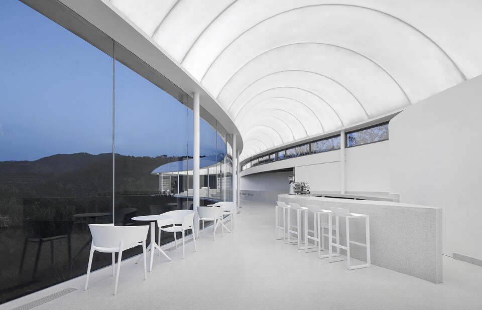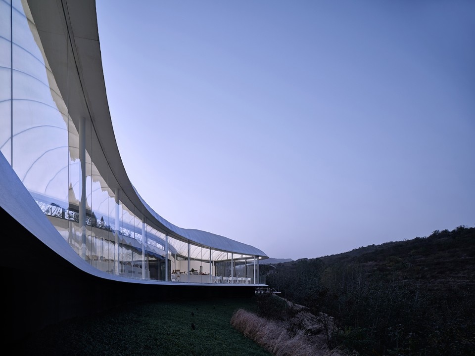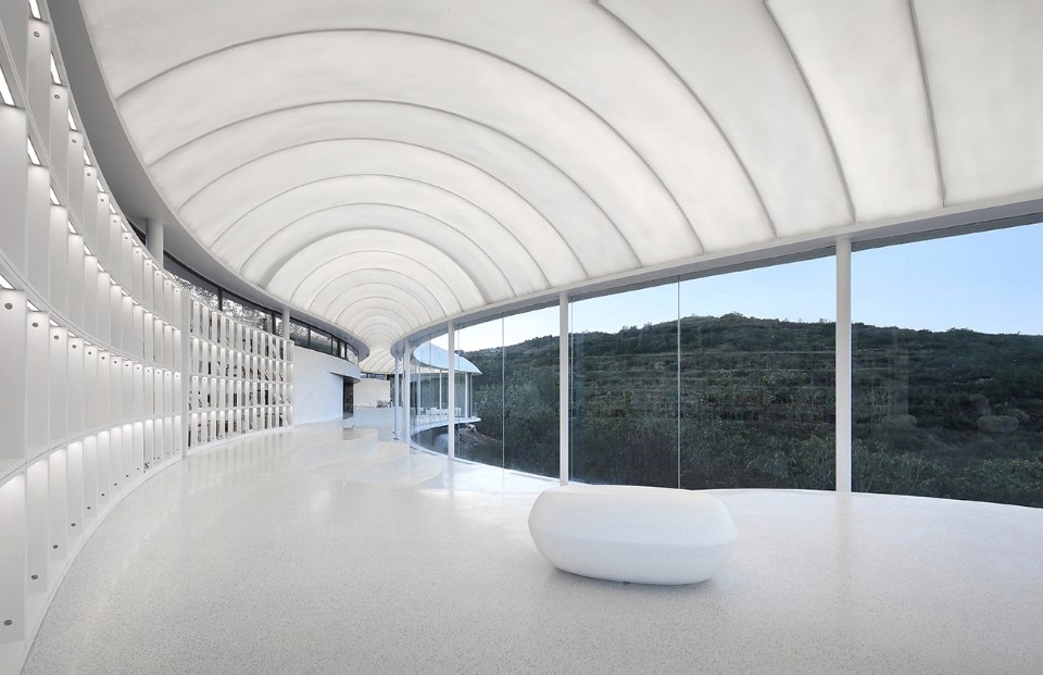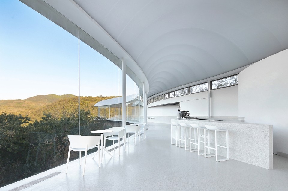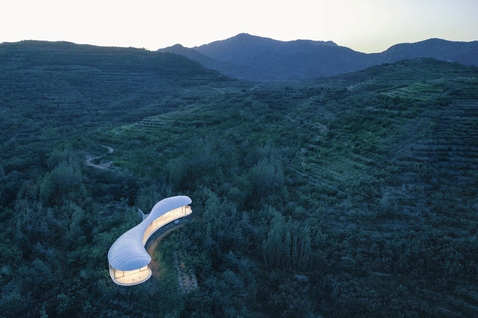 Con questo pensiero, Gad · Line + Studio ha costruito un padiglione sul Monte Tai che sembra fluttuare sul paesaggio roccioso delle cinque montagne sacre. Gli architetti cinesi vogliono liberare l’architettura dal superfluo e raggiungere un’estrema leggerezza e essenzialità. La forma fluida e il colore bianco di Studio Jiunvfeng creano un contrasto voluto con l’ambiente. Intenzione dei progettisti è quella di creare “una nuvola galleggiante che si libra tra le montagne”.