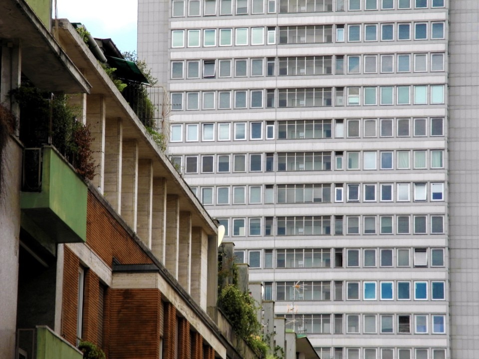 I ritmi frenetici e le dinamiche della produzione edilizia nella Milano degli anni Cinquanta e Sessanta richiedono l’esecuzione di progetti che propongano schemi in grado di ridurre al minimo gli imprevisti e le correzioni in fase di esecuzione, oltre a garantire un elevato grado di flessibilità in termini di distribuzione interna, per potersi adattare di volta in volta alle richieste del mercato. Il tema della standardizzazione trova quindi applicazione, con il primo Mattioni, nel definire alcuni elementi modulari che abbiano tempi e costi di esecuzione consolidati tramite i quali comporre il progetto preliminare e poter prevedere efficacemente i rischi d’impresa e i margini di guadagno. Alle variabili che si possono riscontrare in situ, Mattioni contrappone quindi dei moduli con i quali sviluppare spazi interni, facciate-tipo e schemi planimetrici facilmente aggregabili e scomponibili, pensati per utenti-tipo definiti a partire da indagini di mercato. Da questi modelli nascono, in collaborazione con l’impresa Bassanini, gli edifici a torre denominati “Elios” di Viale Monte Rosa (1950-53) e “Pollux” di Via De Amicis (1952-1955), la Torre Domus (1953-54) di Viale Zara, progettata per Vismara, e le case alte di Largo V Alpini (1959-60) realizzate dall’impresa SACIE su iniziativa di Generale Immobiliare [2].