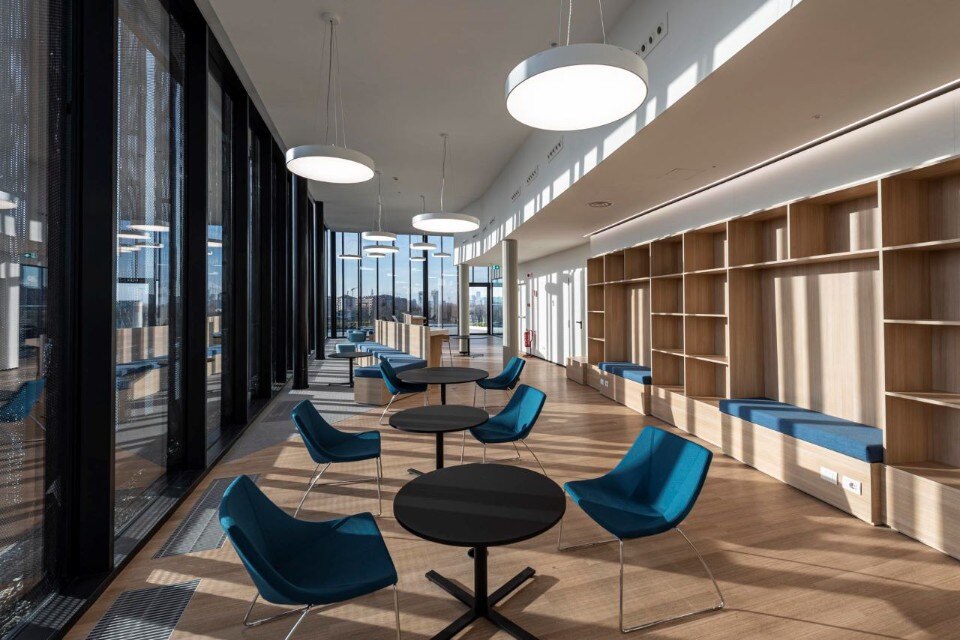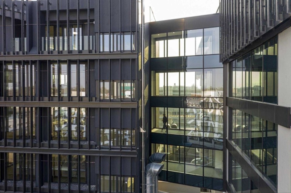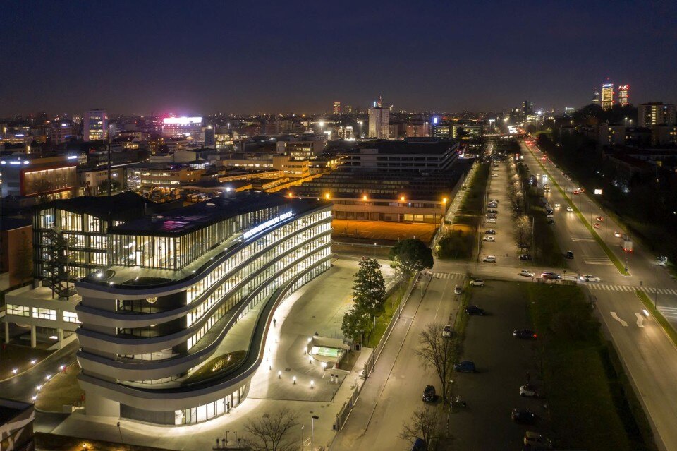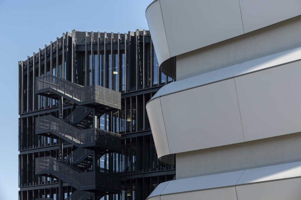 Riservato al quartier generale di Volkswagen Leasing e Volkswagen Bank, il progetto a basso impatto ambientale ha ottenuto la certificazione Leed Silver: in termini di benessere psicofisico e sostenibilità sono state annesse numerose aree verdi, dal giardino pensile dell’ultimo piano ai giardini fruibili dall’interno grazie alle vetrate circolari.