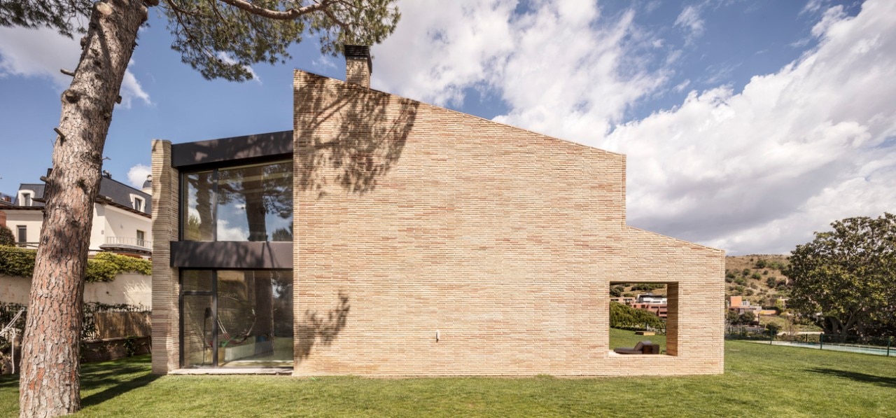 Più di 1.000 metri quadrati distribuiti su tre livelli vengono definiti dall’uso indiscusso del mattone a vista. Studiati dai progettisti in quattro dimensioni diverse a seconda del loro posizionamento – due d'angolo, uno in testata e uno come riempimento – i mattoni dei muri portanti di Villa SV vengono prodotti secondo la flessibilità e la durezza necessarie da maestri artigiani in una fabbrica locale.