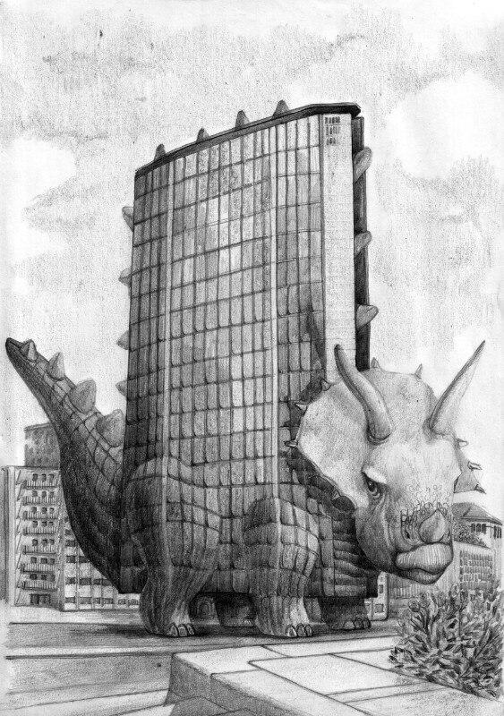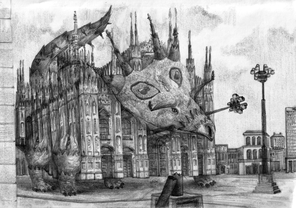 Con uno squisito quanto inspiegabile adattamento, (lo si potrebbe definire un tributo, se non stessimo parlando di animali), allo sforzo estetico e alle prodezze ingegneristiche evidenziatisi a Milano, non solo a cavallo dei due millenni, ma durante tutta la sua storia, i dinosauri popolano la metropoli lombarda riproducendosi con la più audace varietà biomorfa.