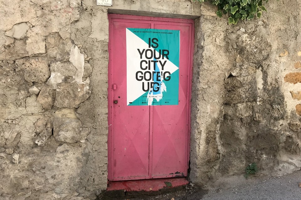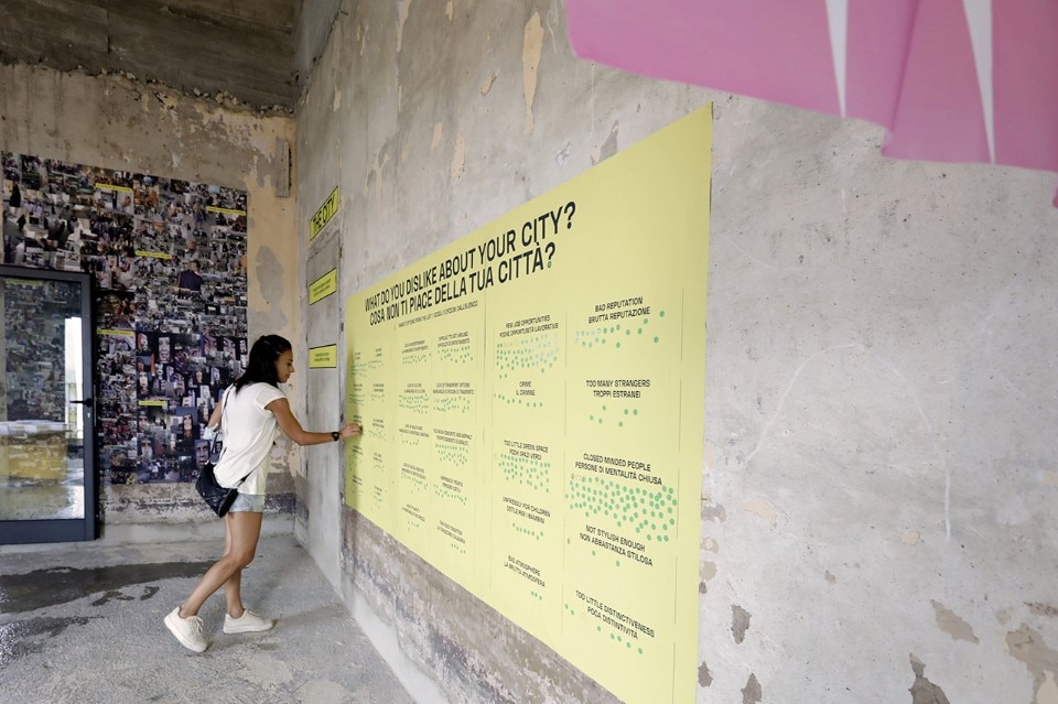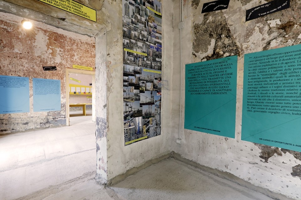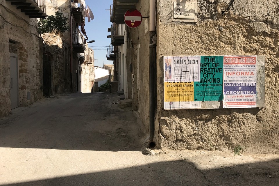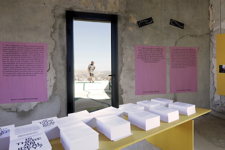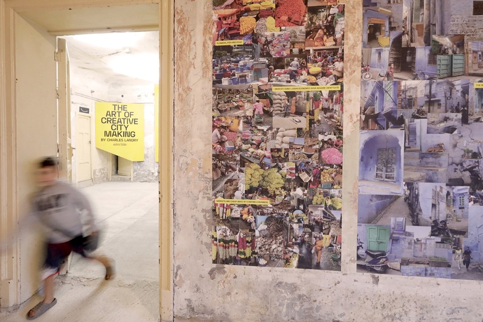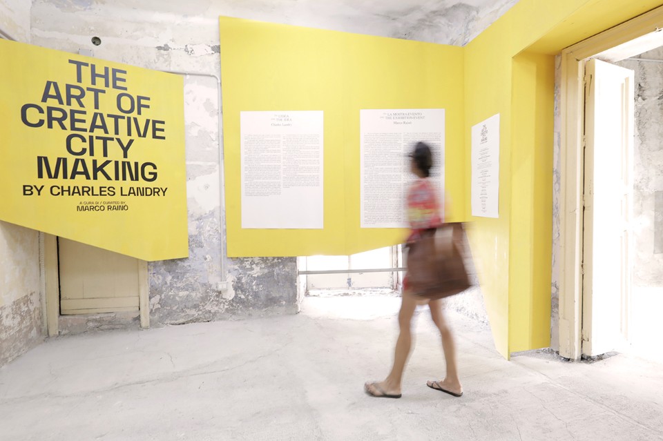 Al primo piano di Palazzo Miccichè, “The art of creative city making by Charles Landry” è una mostra-evento curata da Marco Rainò con un progetto grafico e di allestimento firmato da BRH+. Celebra l’impiego dell’immaginazione e della creatività come risorse strategiche cruciali nel processo di cambiamento e rigenerazione delle città. La mostra si apre con un’incredibile raccolta iconografica costruita lungo un arco temporale di quarant’anni e suddivisa per categorie – ad esempio l’impatto delle scritte Coca-Cola sugli arredi urbani di tutto il mondo – e colpisce la restituzione grafica di un’indagine condotta tra i giovani abitanti di Favara sulla propria percezione e gradimento della città. Fare città è apertamente un'azione dal basso, partecipativo e collettivo, dove non predomina un’estetica precostruita ma la fruizione intuitiva degli spazi.