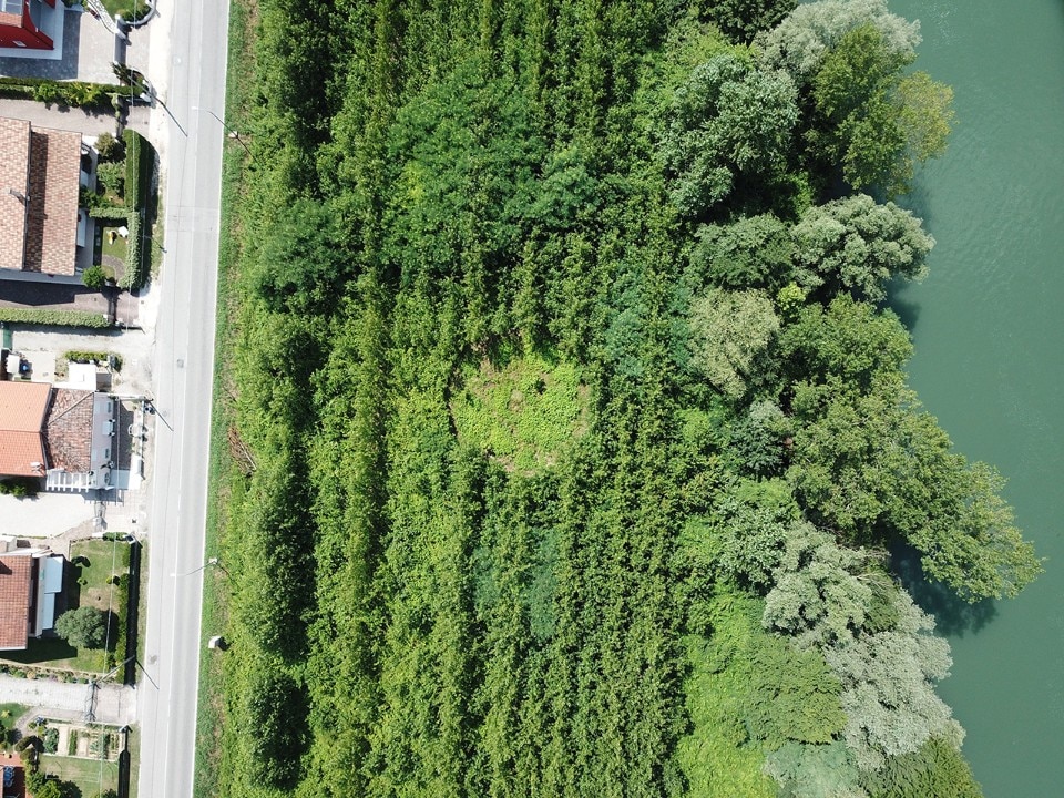 Un vuoto di 250 mq per 10 metri di altezza, a cui si arriva attraverso un percorso labirintico scavato in una fitta vegetazione. Sono 2.500 i metri cubi di massa vegetale sottratta a un pioppeto sulle rive del Sile, in provincia di Treviso. Qui il collettivo veneto-siciliano Ground Action – fondato da Matteo D'Ambros, Sergio Sanna e Roberto Zancan – ha creato (e continua a mantenere) uno spazio circolare per sottrazione.